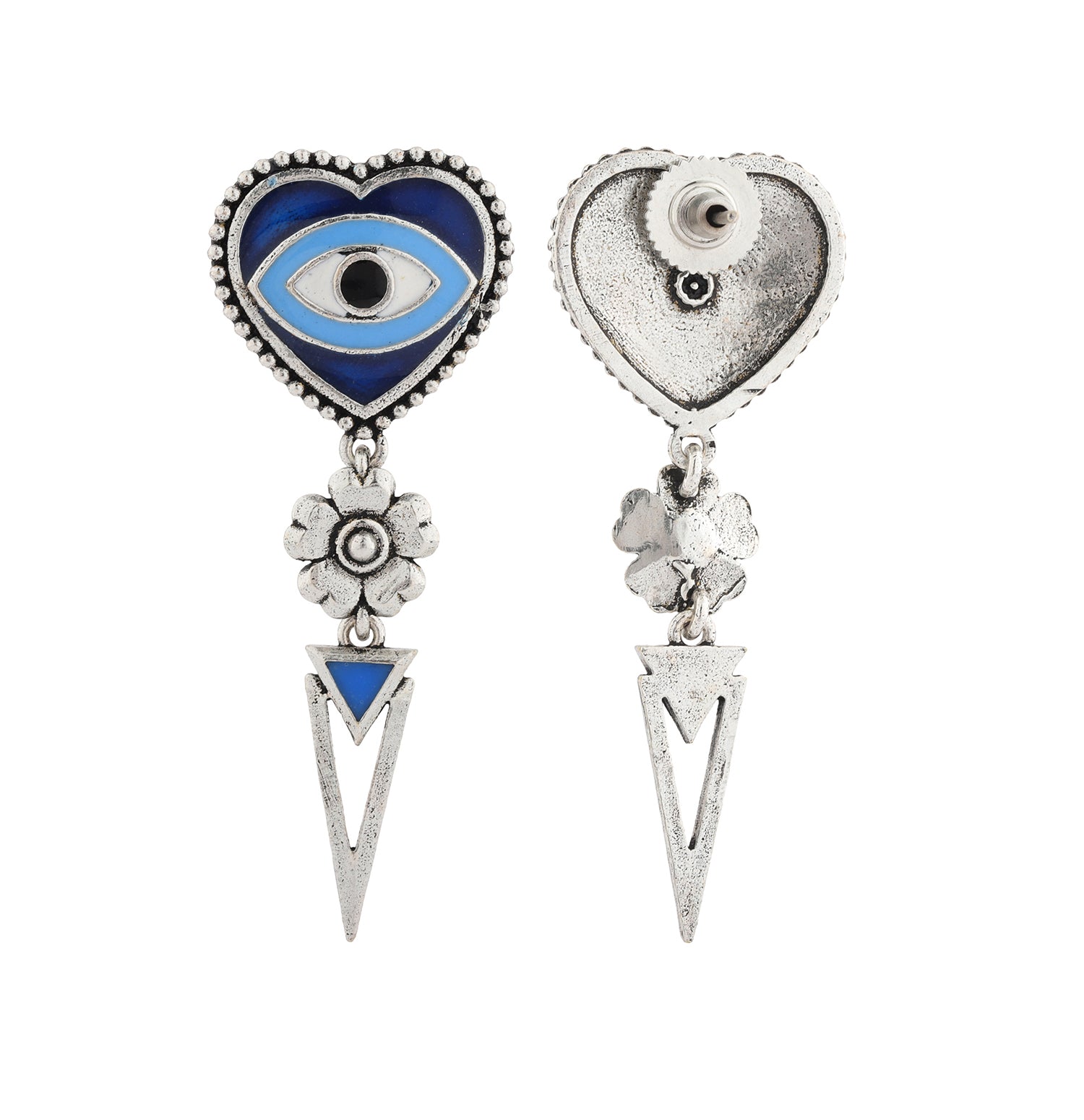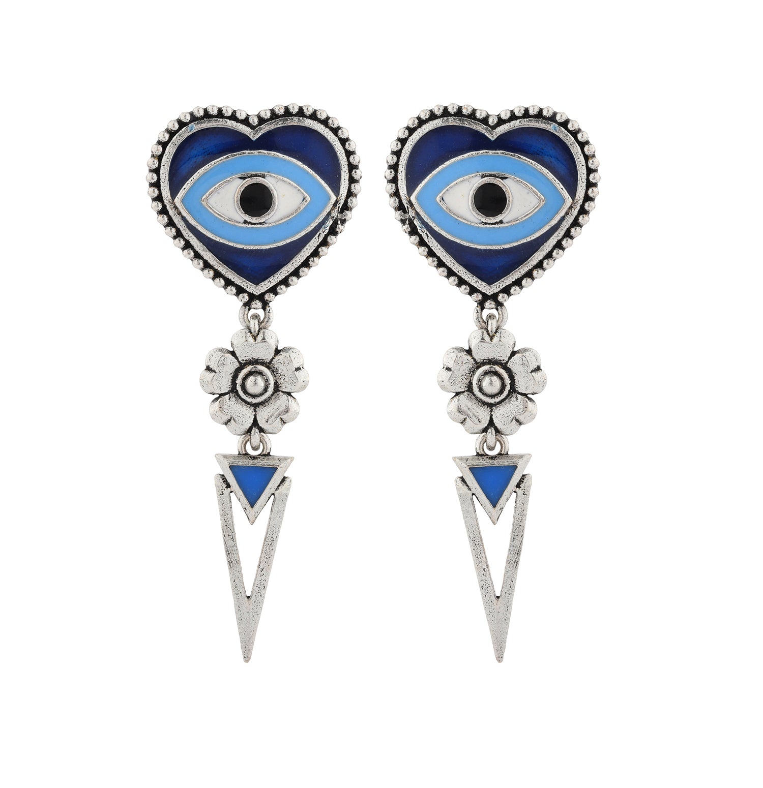 Boho Tribe Nomadic Hearts Eye Oxidised Earrings