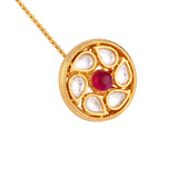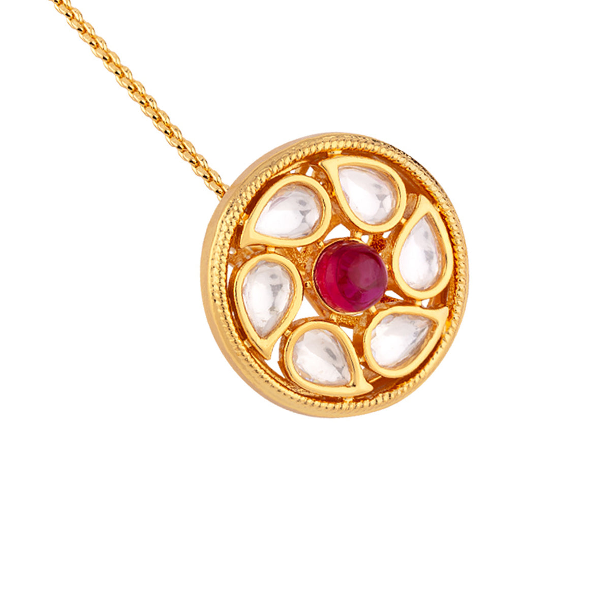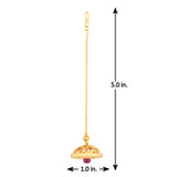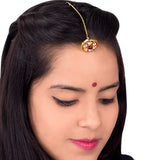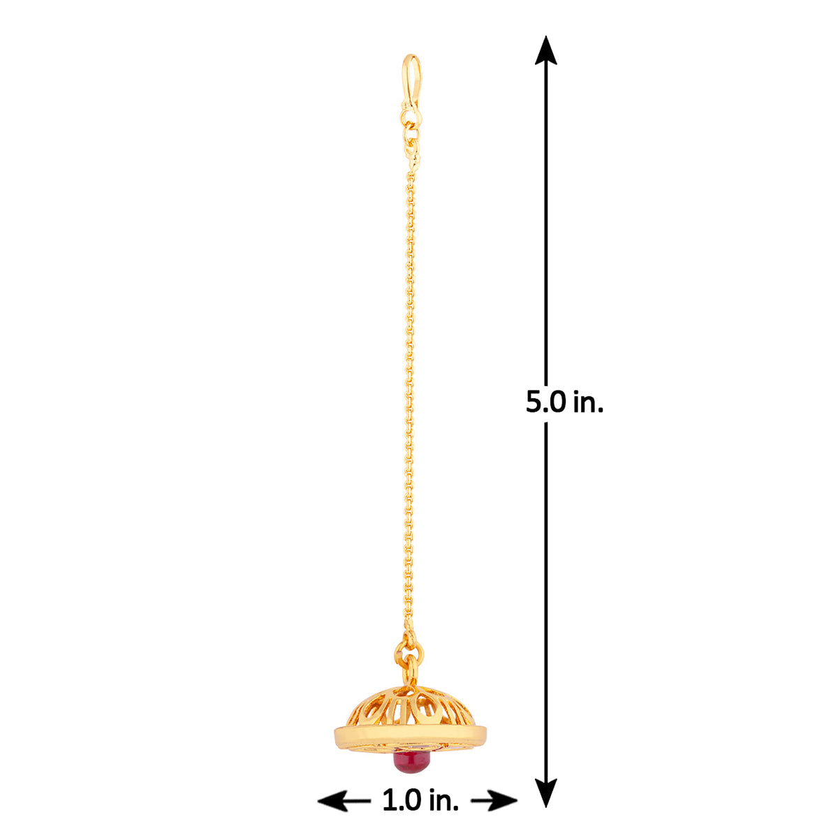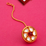 Traditional borla style brass maang tika. Yellow gold plated and faux kundan gems embellished. Pair with ethnic looks. This piece of jewelry comes with the Voylla assurance of quality and durability.