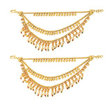 Ear chains with heavy pearl embellishments. Made from brass and yellow gold plated. Match with ethnic attire.