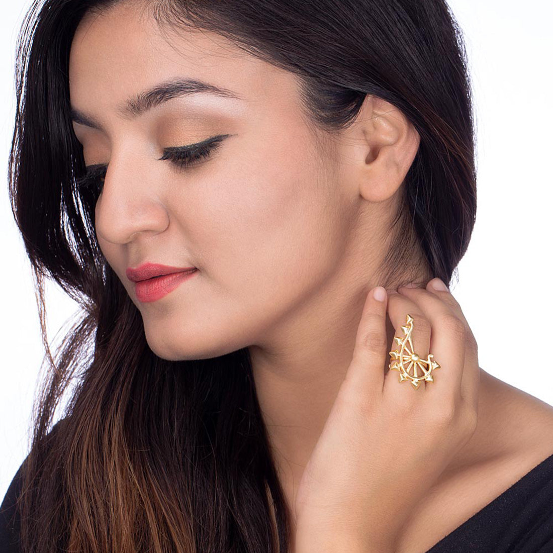 Set in traditional Indian motifs, the Futuristic Spikes Collection brass ring take style to the next level. Whether you wear it at an office or formal occasion, attention is guaranteed.