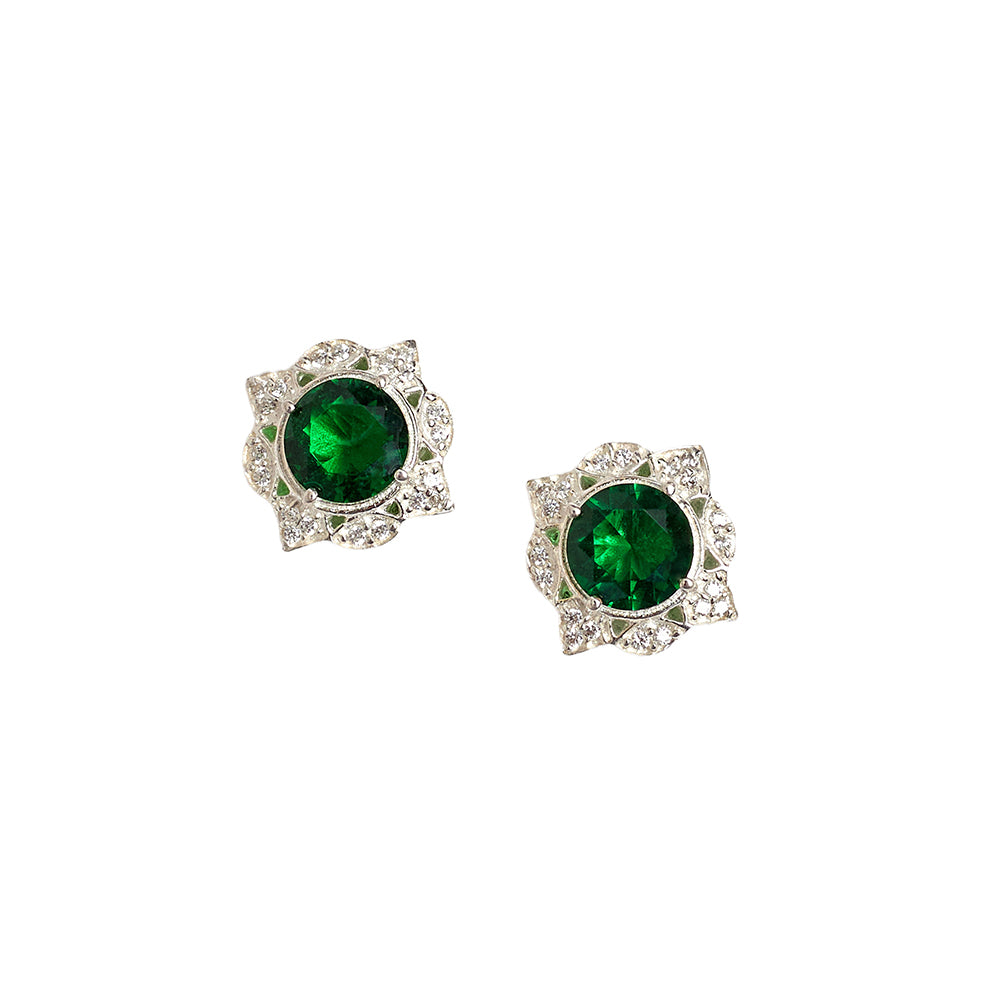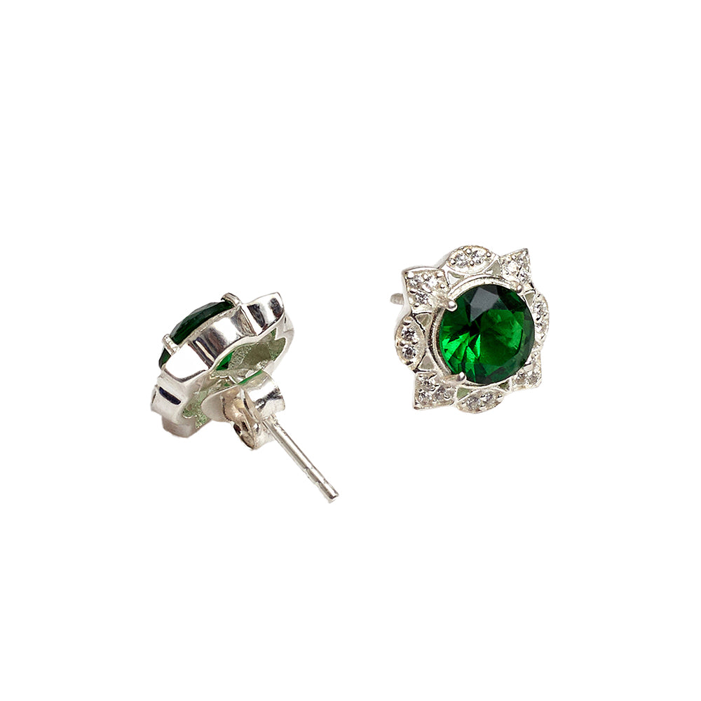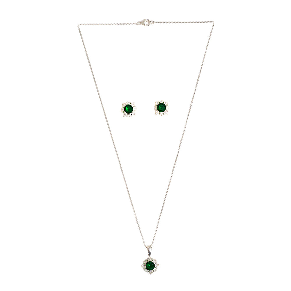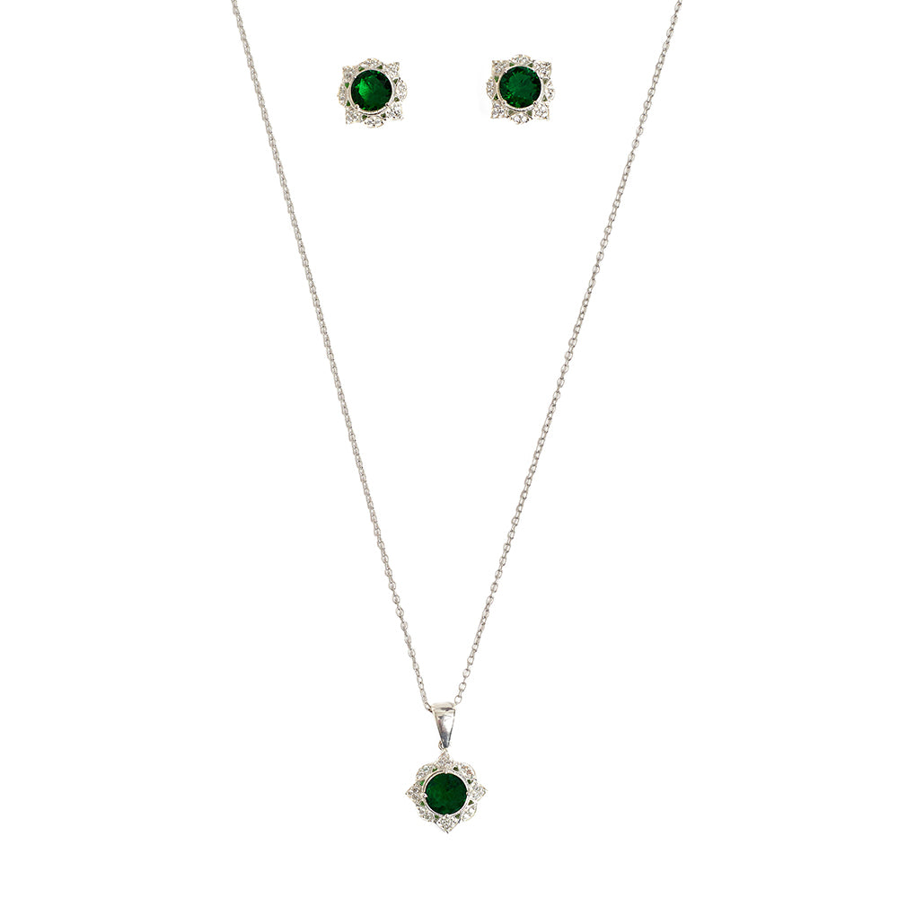Emerald 4 Star 925 Sterling Silver Pendant Set