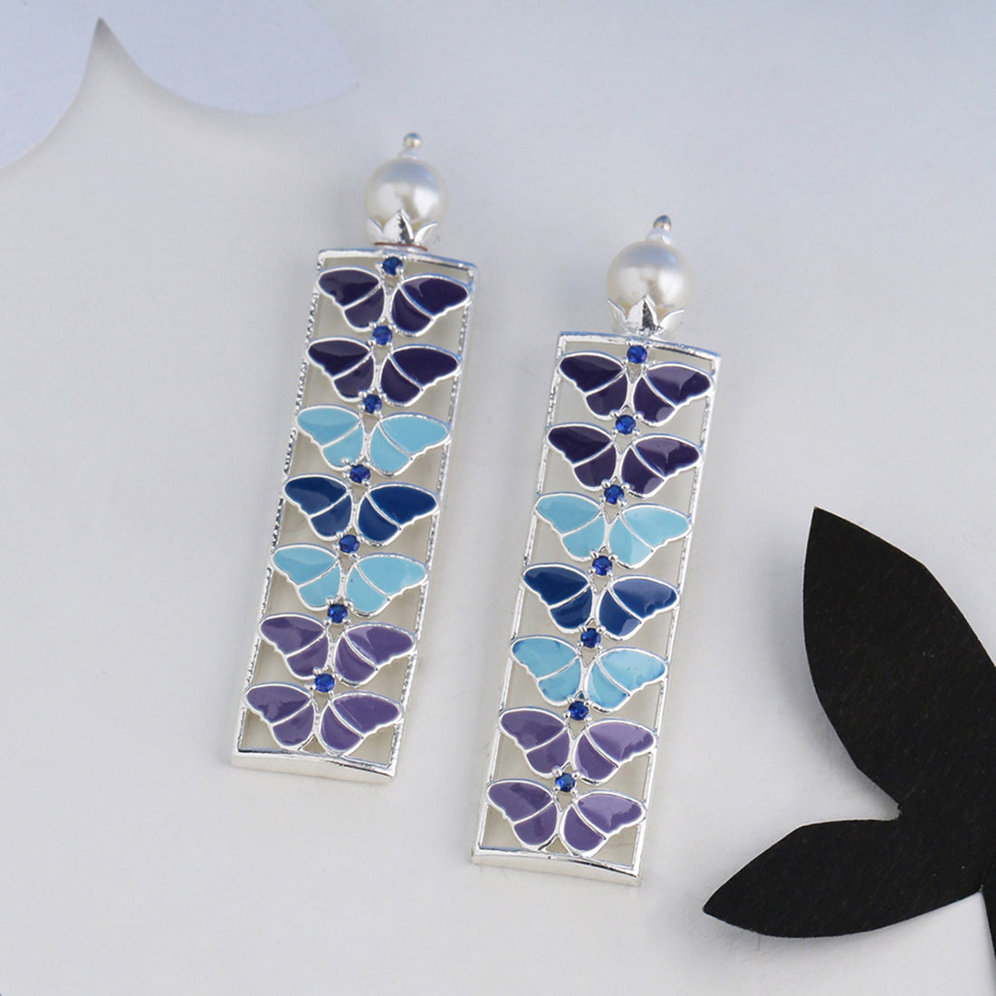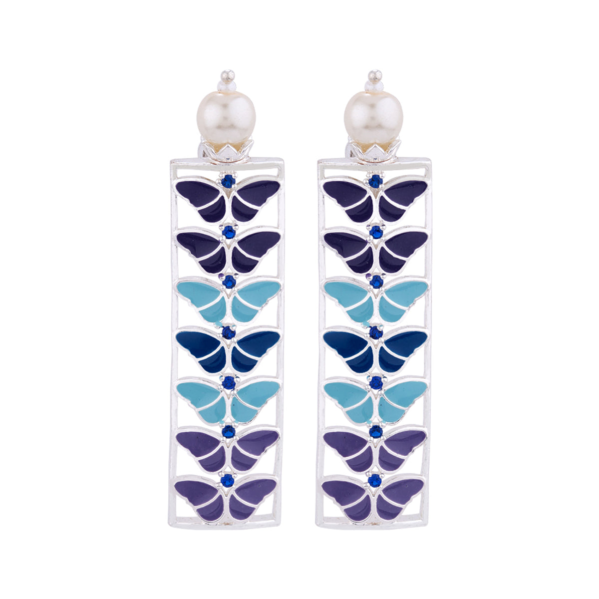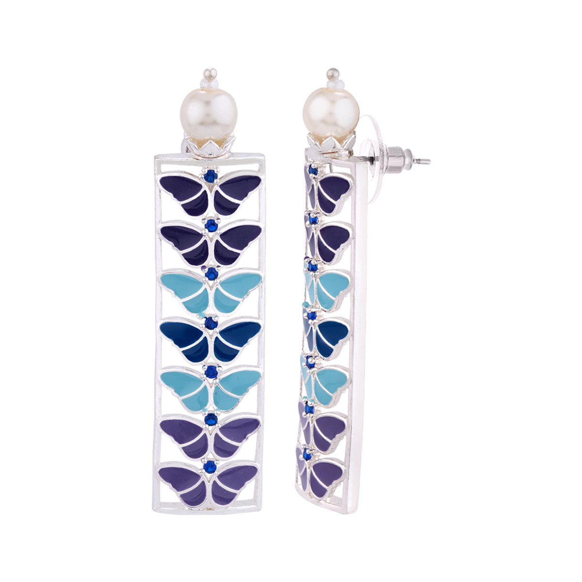Enjoy the shades of eternal blues in these Dainty Silver plated Butterfly Blue Dangler Earrings.