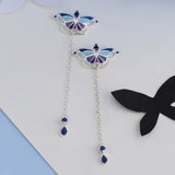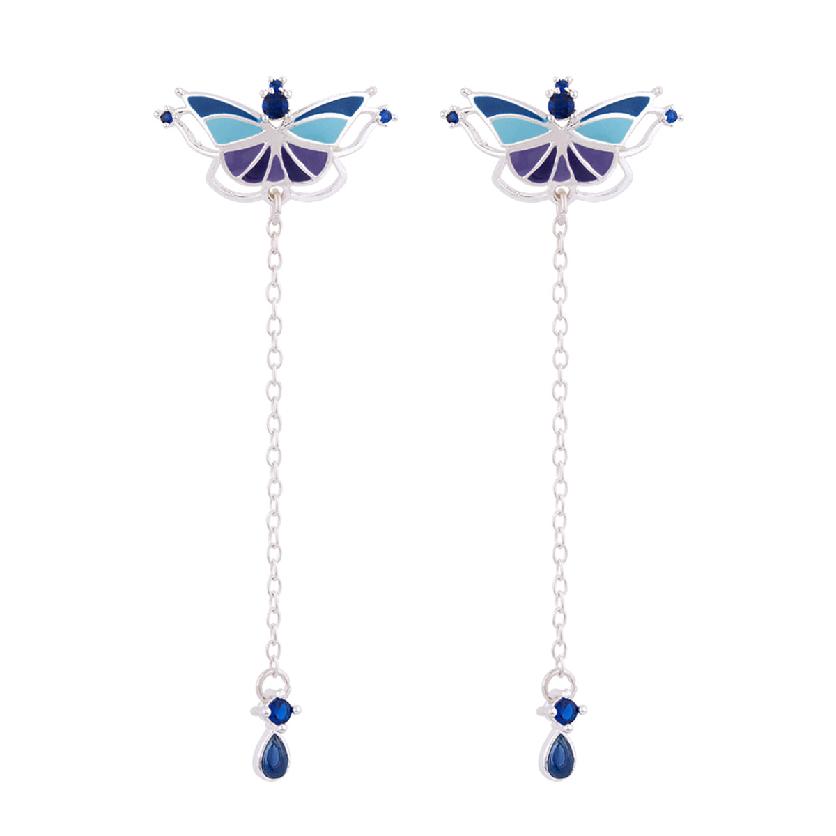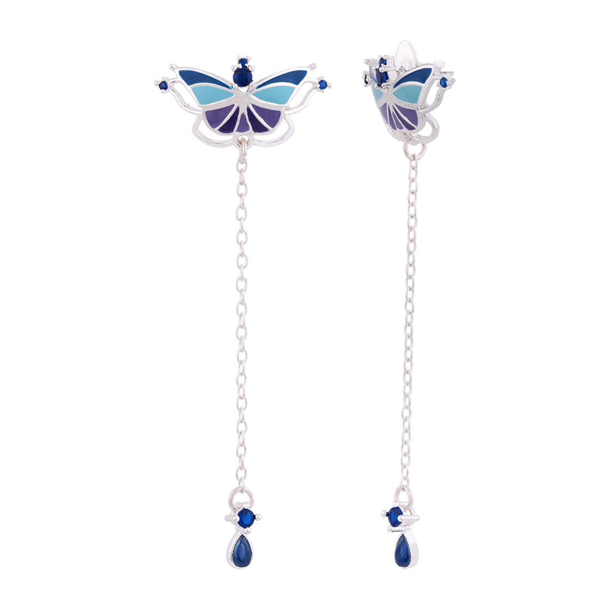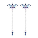 A hint of mischief and a whole lotta style. Pick the silver plated Butterfly Dangle and Drop Blue Earrings for a day with the girl gang.