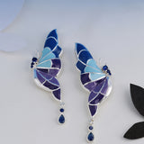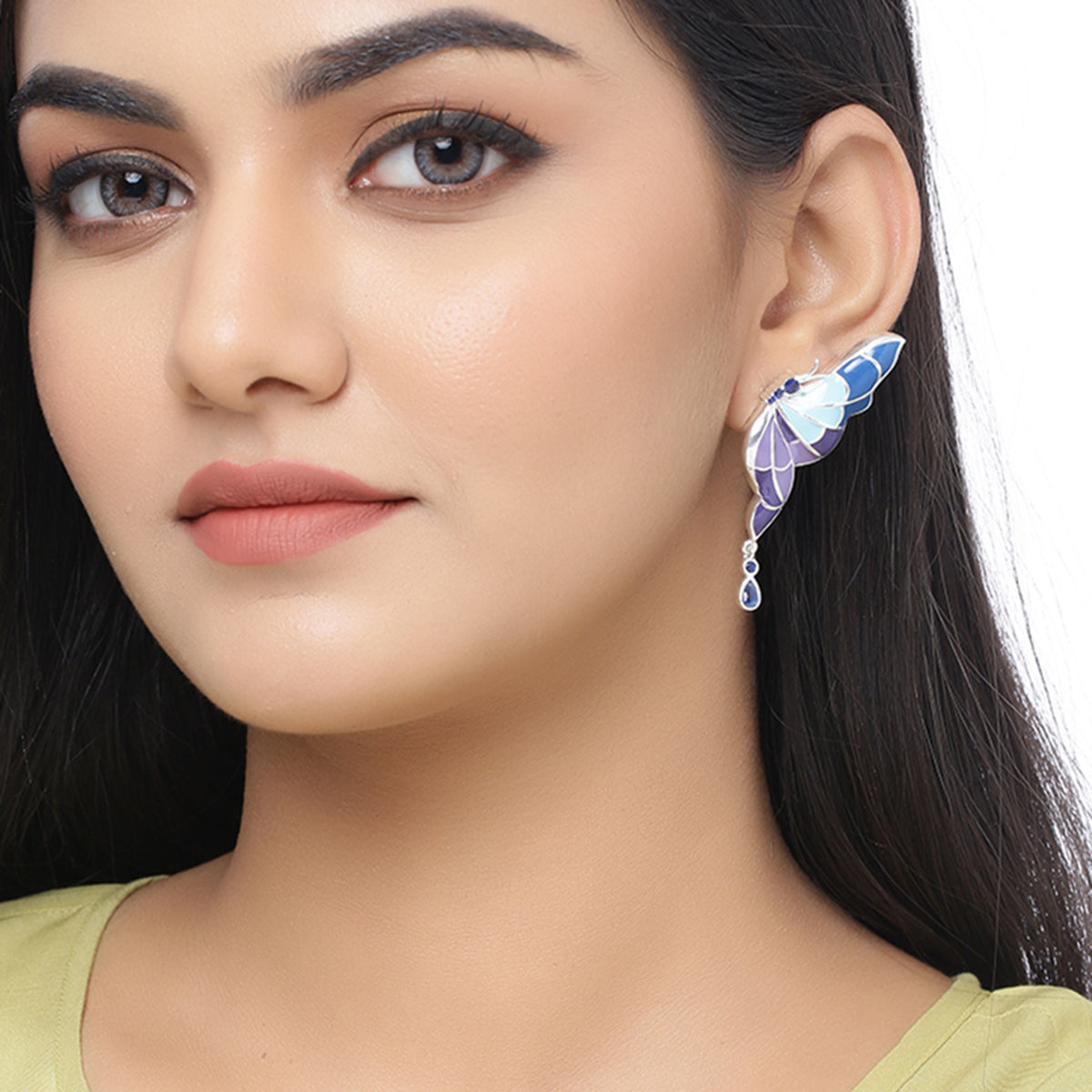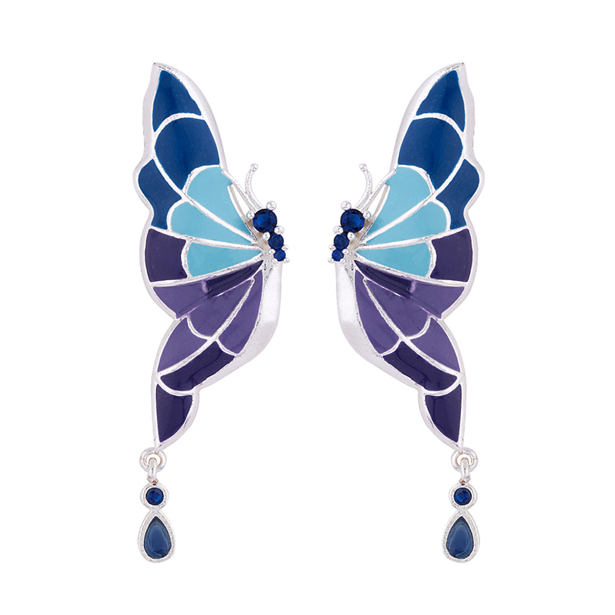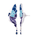 Step out under the endless winter skies-in the silvery Butterfly Drop Studs - Blue.