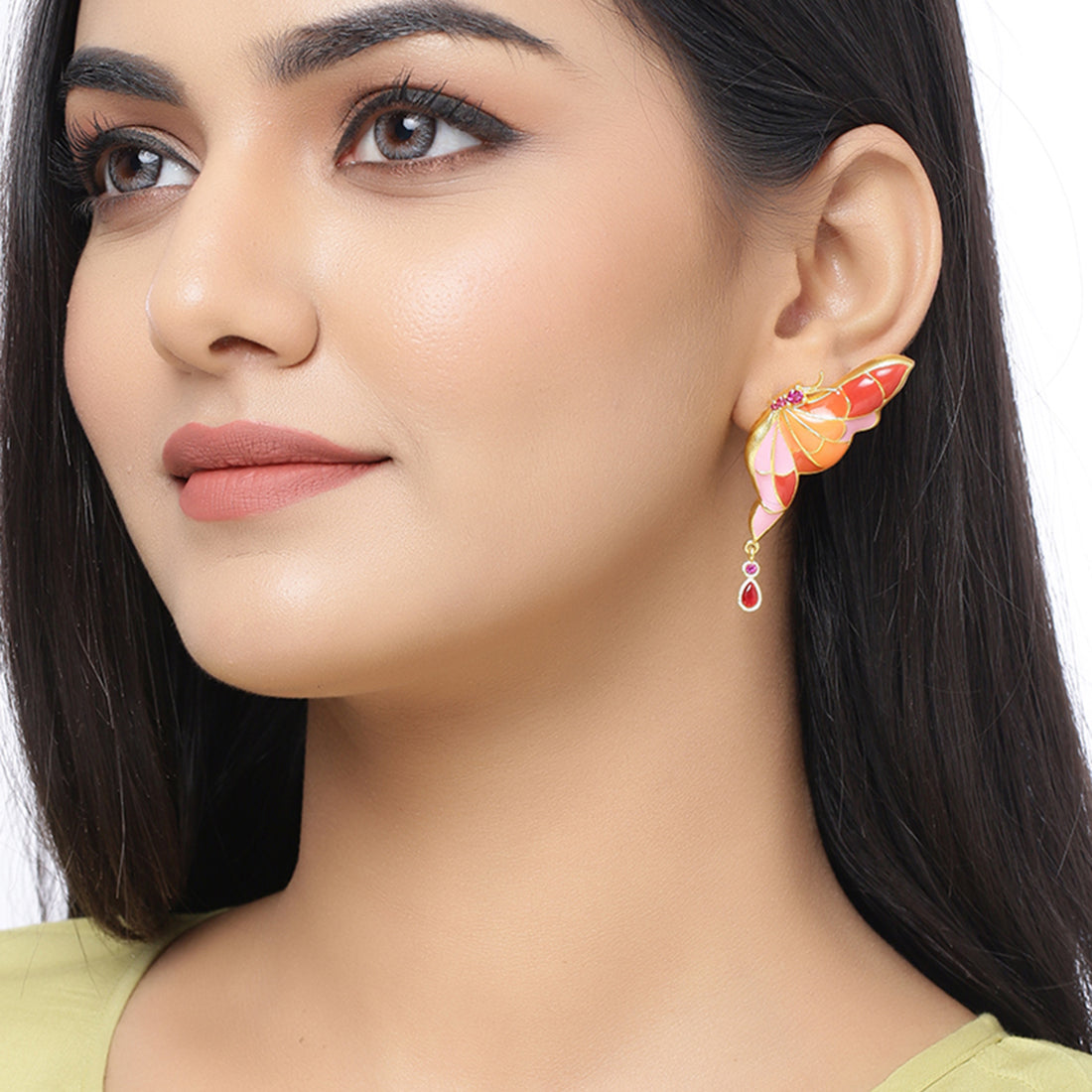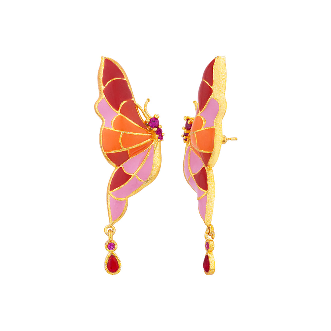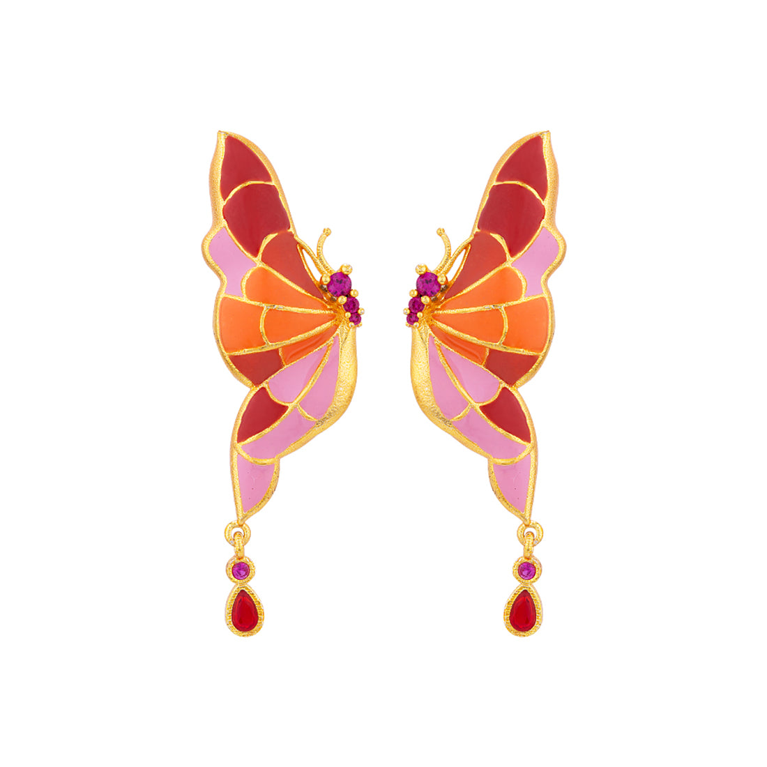 Drop Dead Gorgeous! The flash gold Butterfly Drop Studs - Orange are perfect for stealing the show.