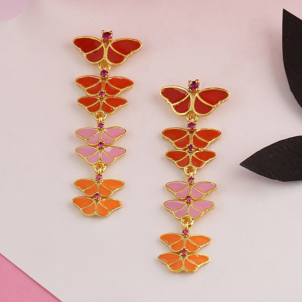 Butterfly Garden Orange Dangler Earrings -