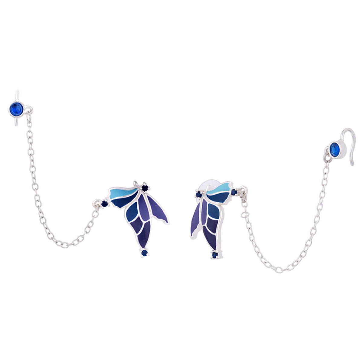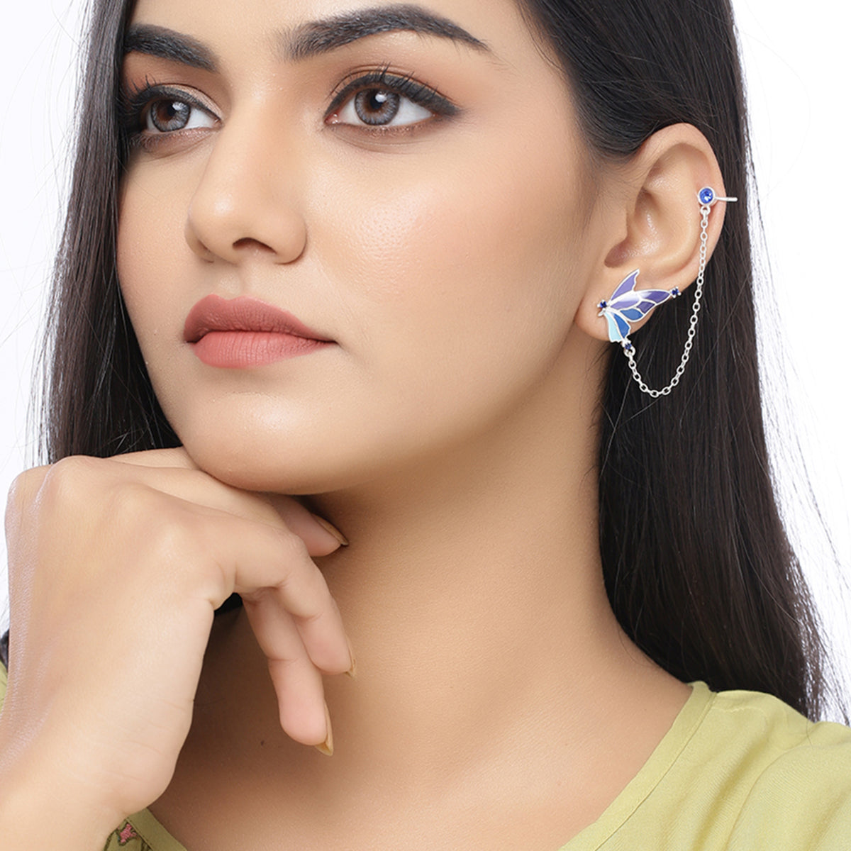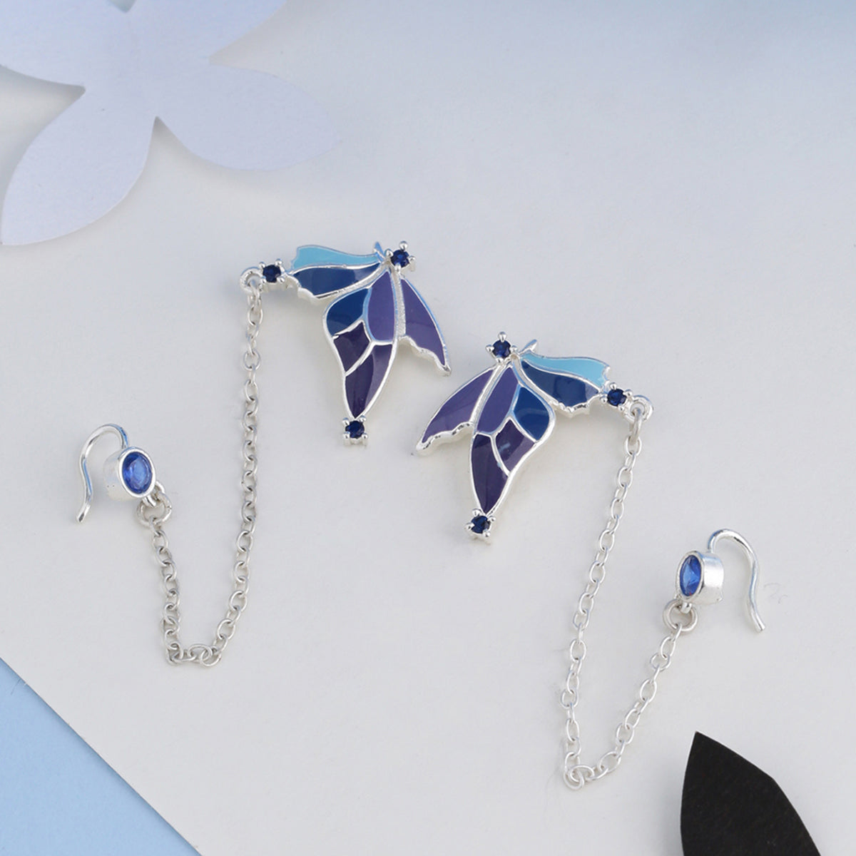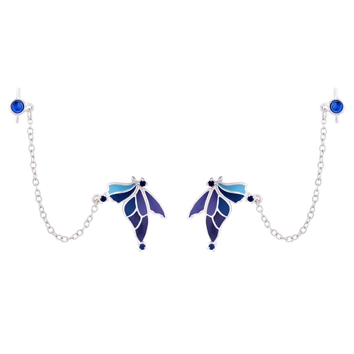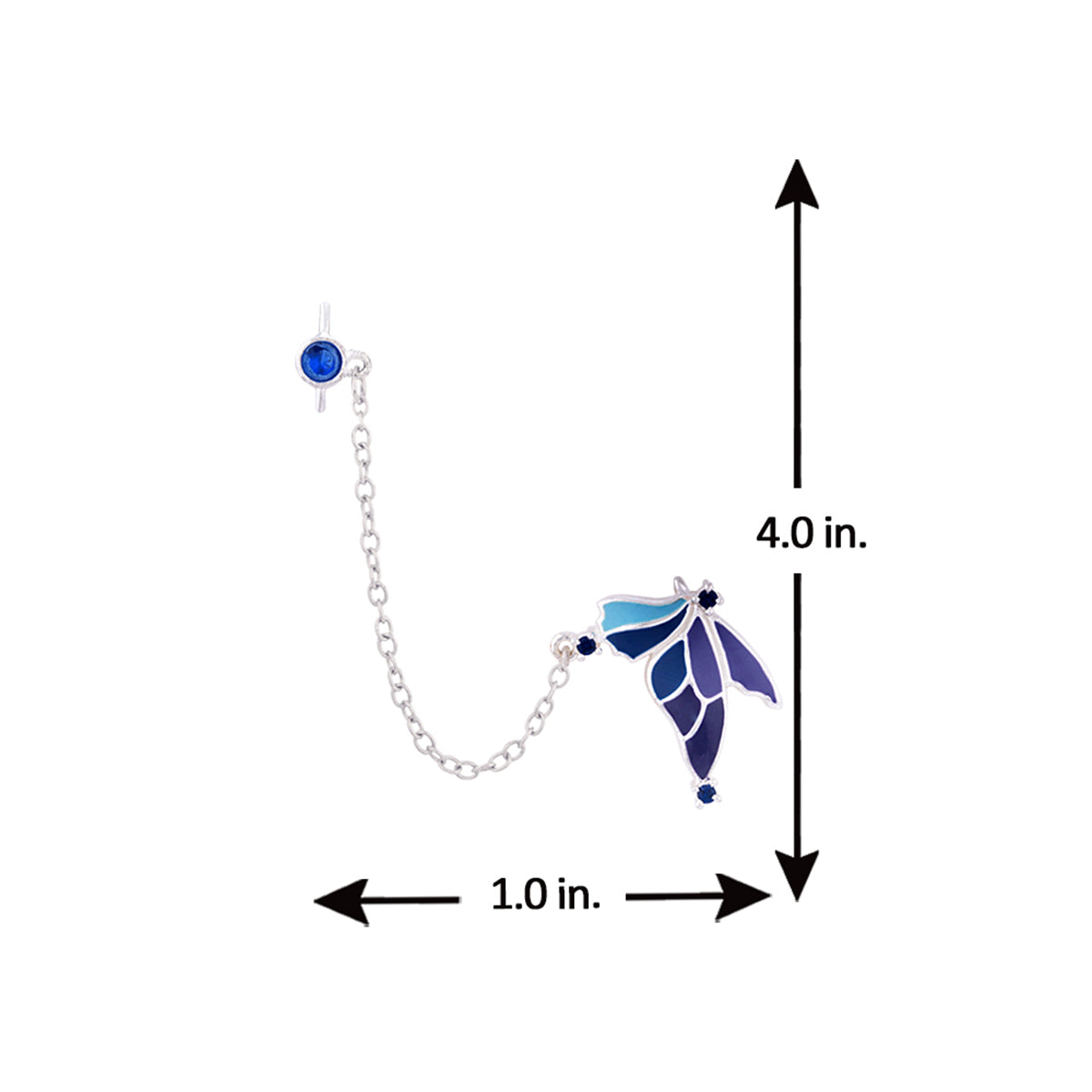 A touch of silver and hint of blue - the Butterfly Kiss Drop Chain Blue Earrings are perfect for you!