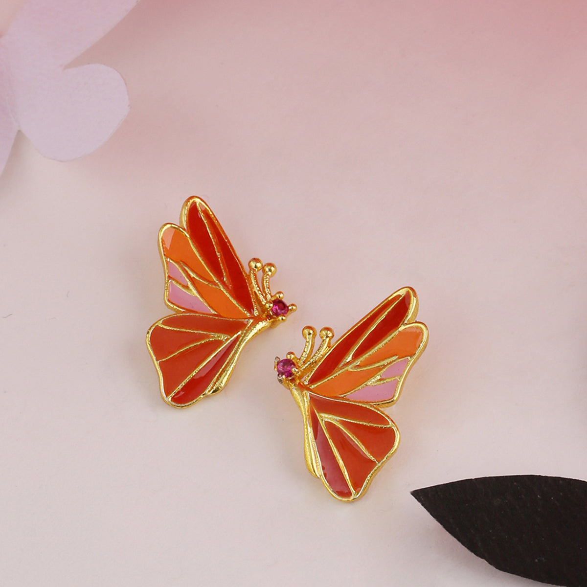 Get insta ready with the Flash Gold plated Butterfly Silver Kiss Orange Studs.
