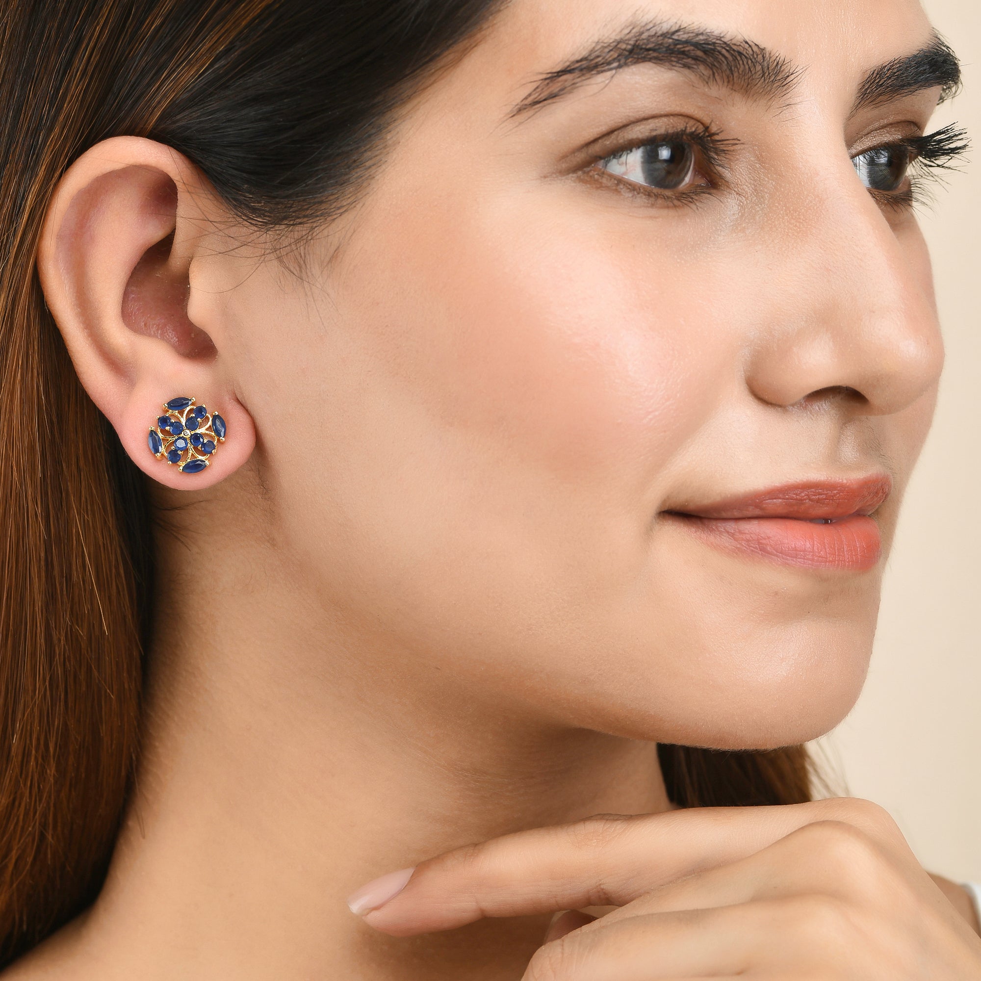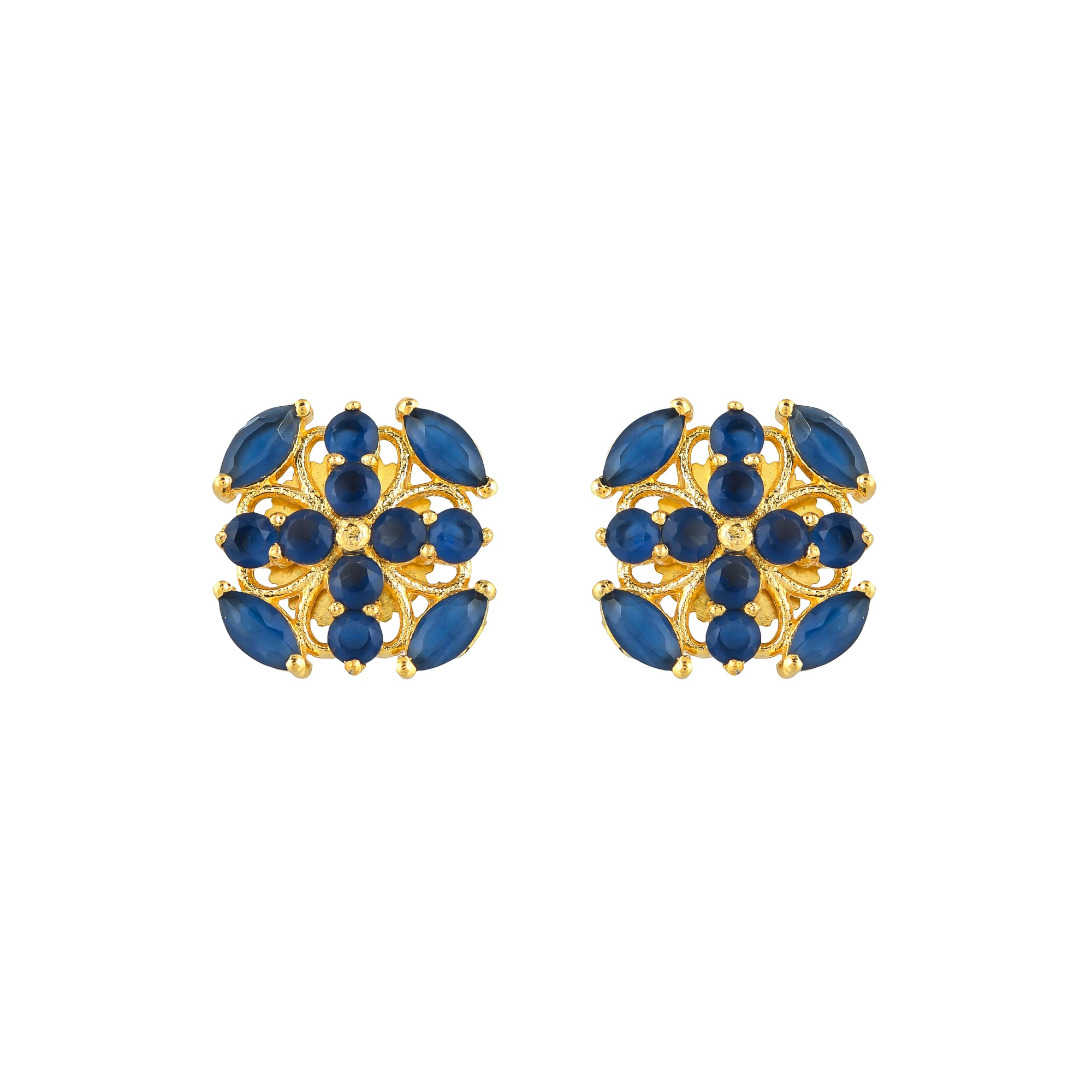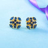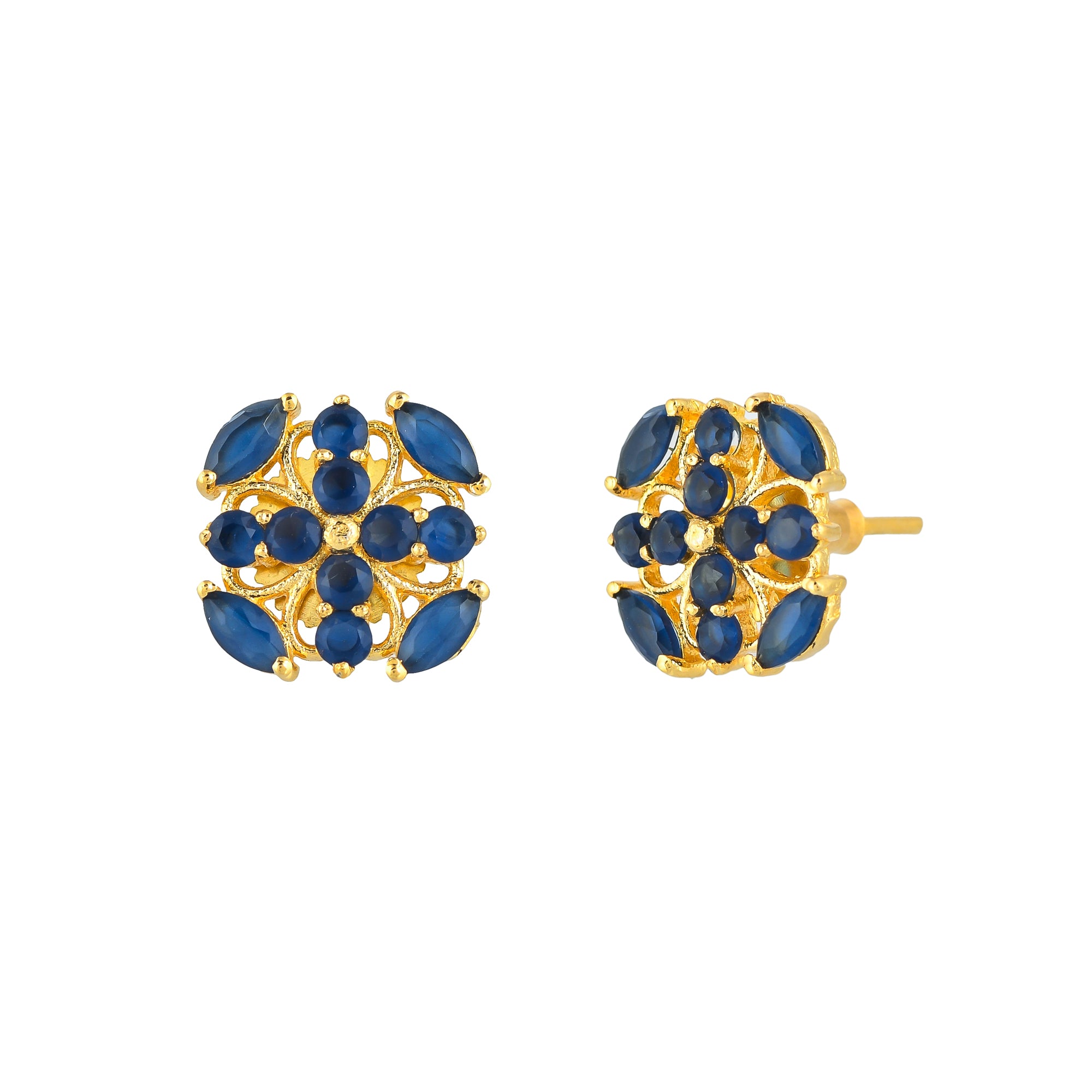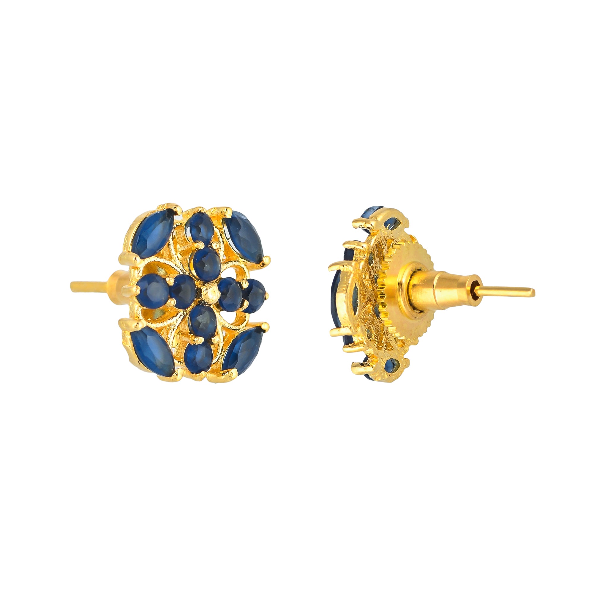Casual stud earrings with blue zirconia gems. Made from brass and gold plated. Pair with everyday attire.