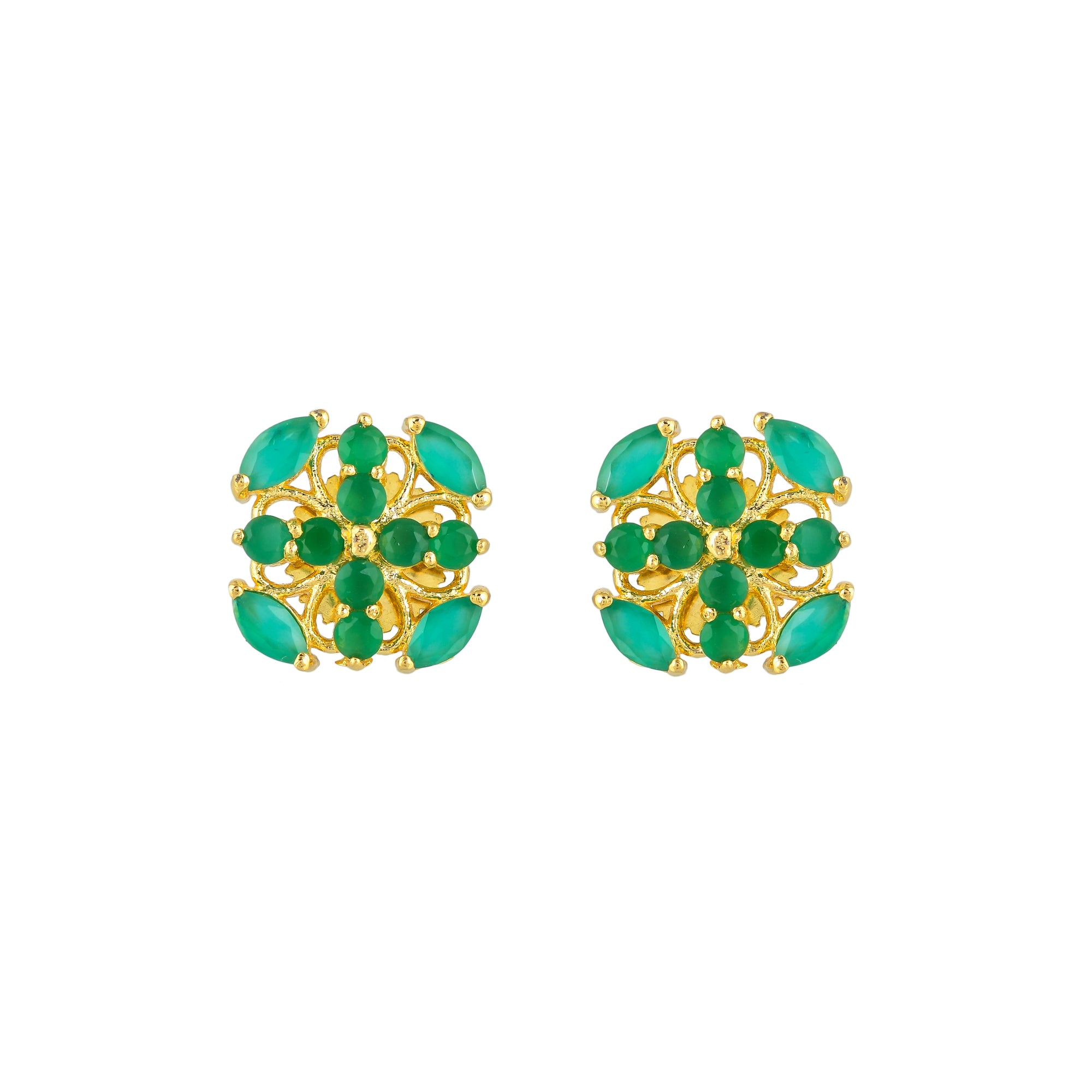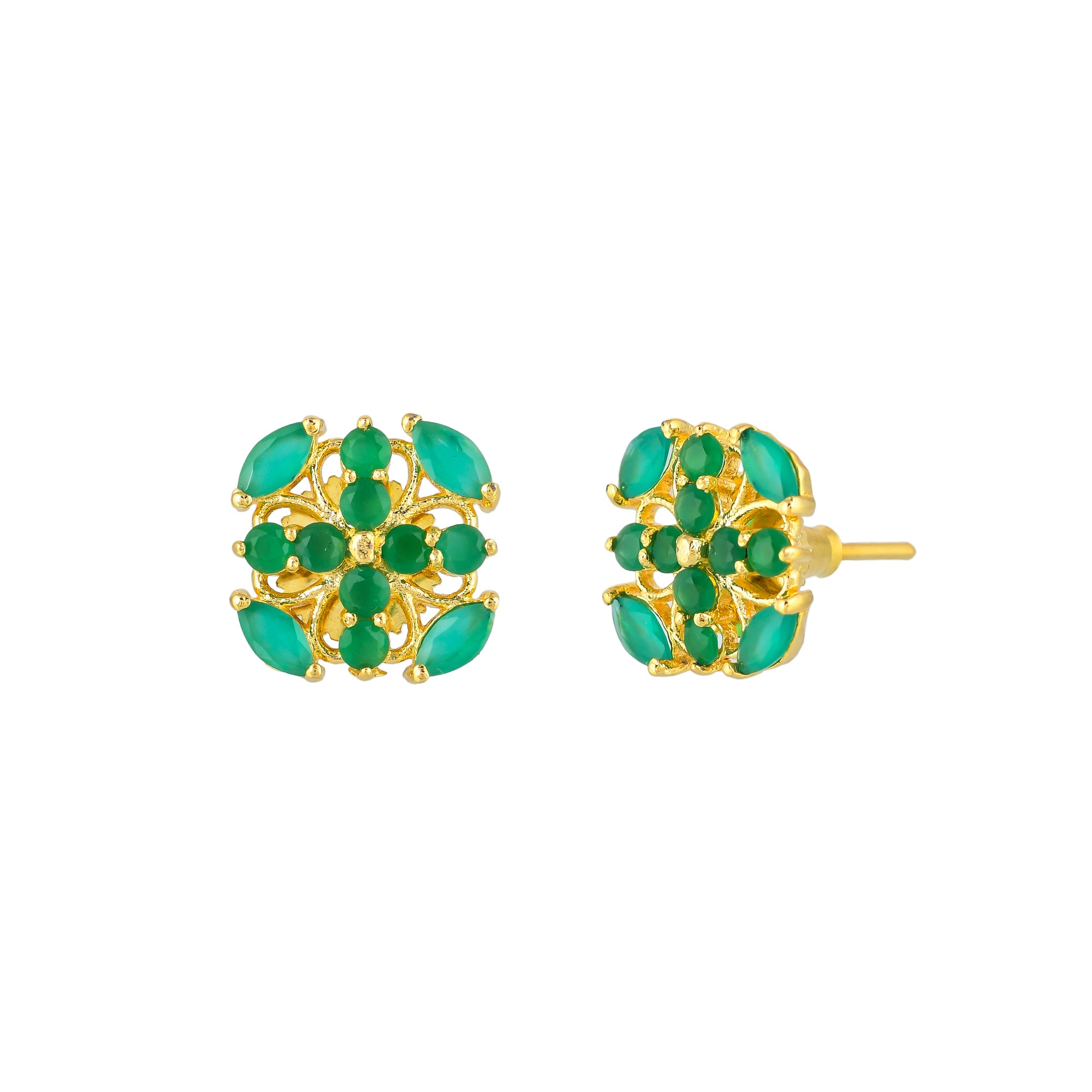 Casual style green CZ gemstones stud earrings. Gold plated, made from brass, lightweight and versatile.