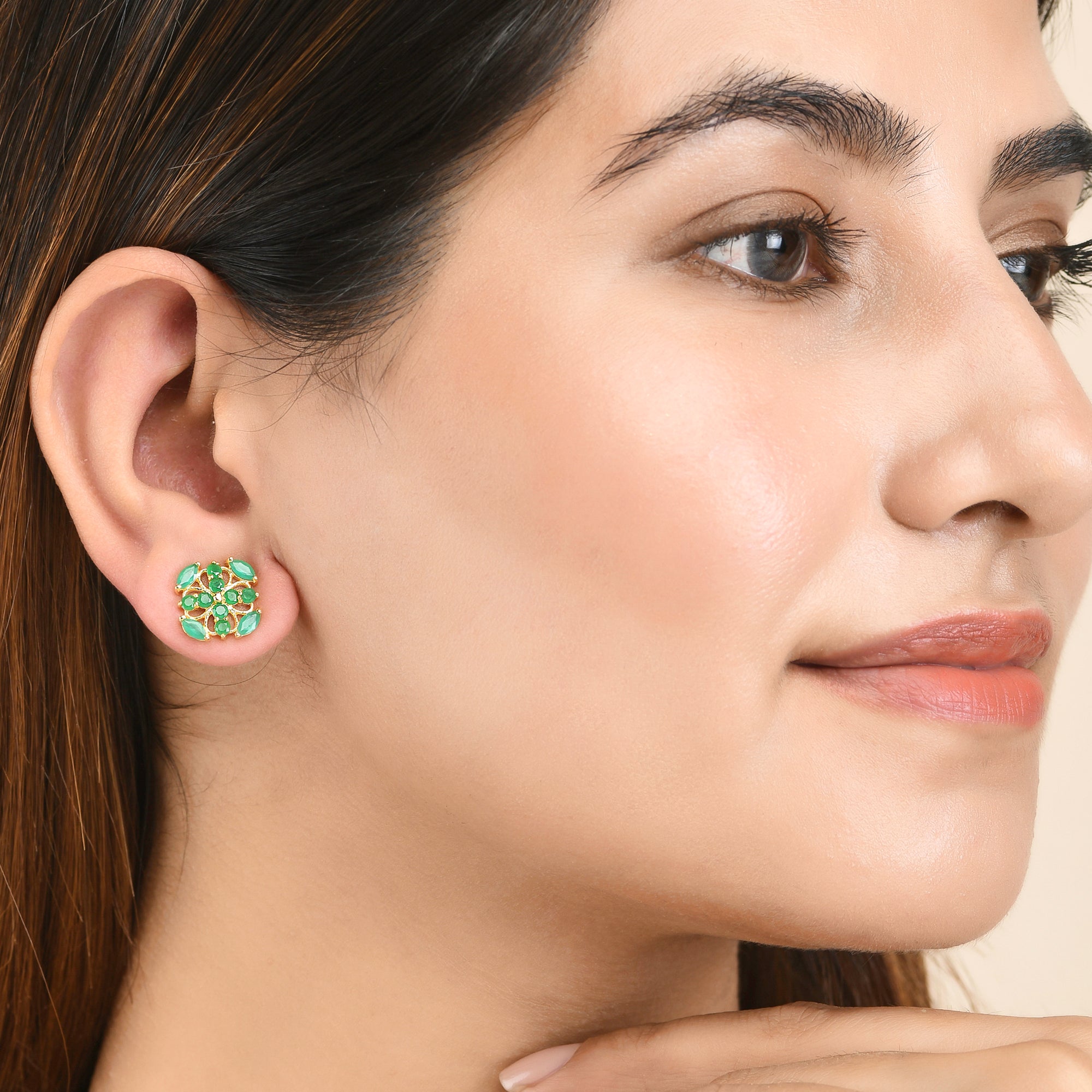 Casual Green Zirconia Gemstones Stud Earrings