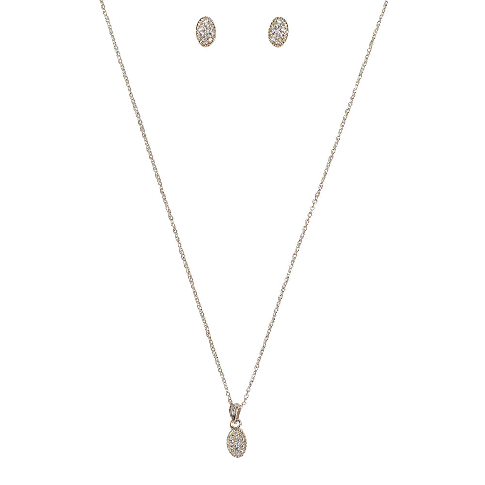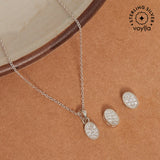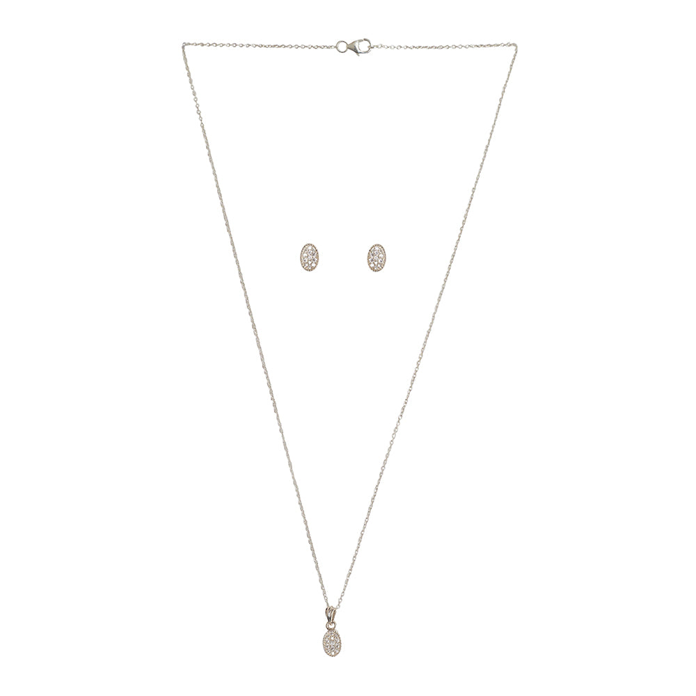 Casual Oval CZ Pendant Necklace and Earring 925 Sterling Silver Set