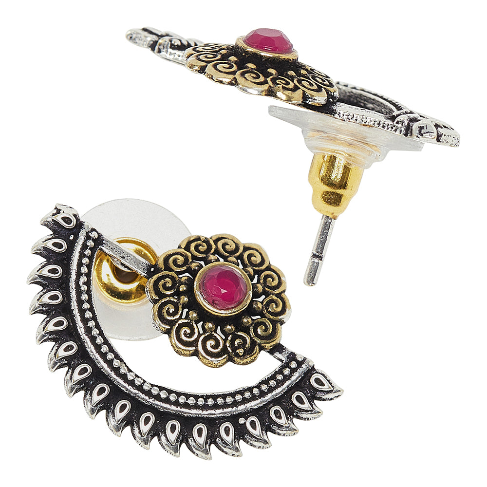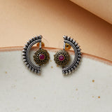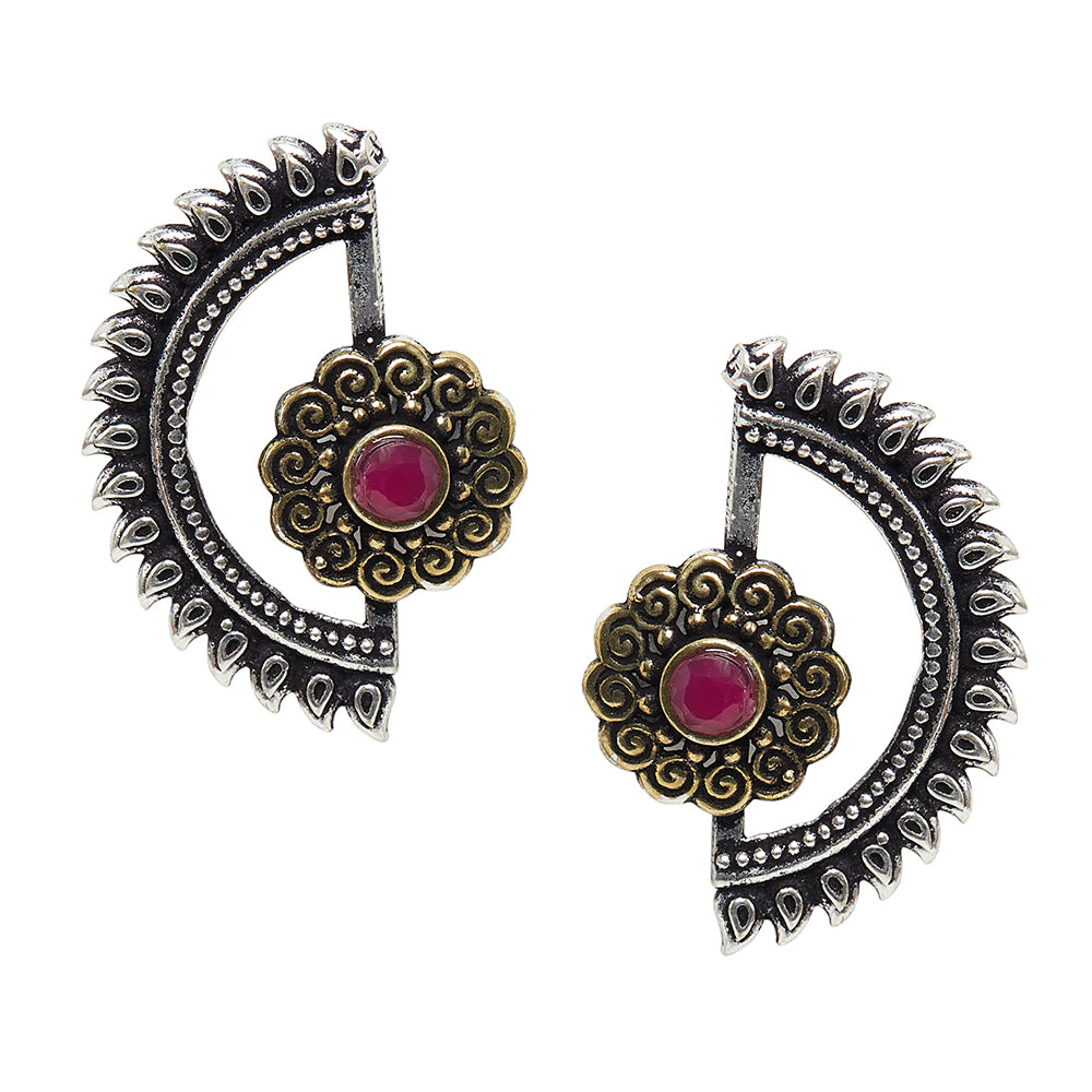 Chamba Floral Motif Crescent Silver Plated Brass Earrings
