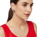 Brass earrings fashioned into a crescent design and featuring floral motifs. Silver plating adds to the rustic charm of this lightly embellished pair, which is lightweight and comfortable. Wear the earrings with an ethnic, Bohemian skirt or a casual jeans and kurta outfit.