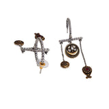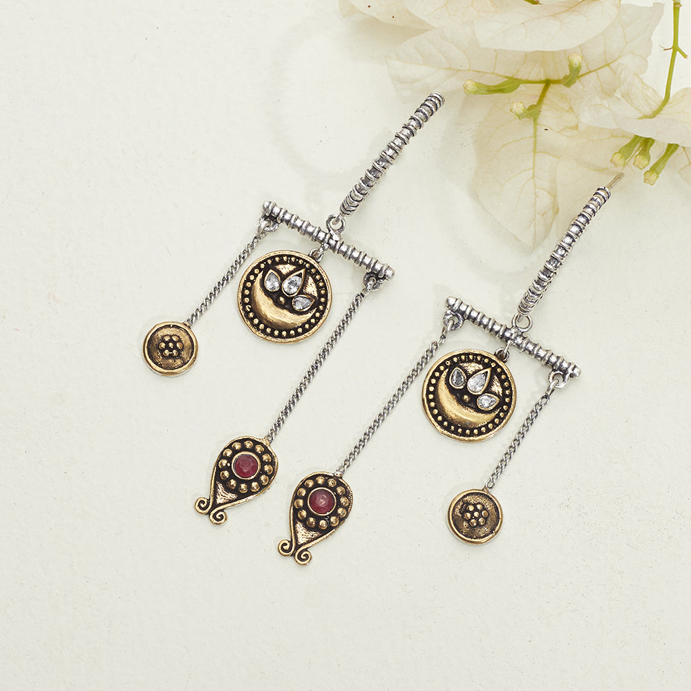 Chamba Half Moon Design Asymmetrical Silver Plated Brass Drop Earrings