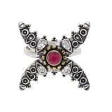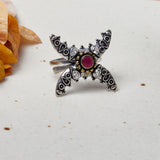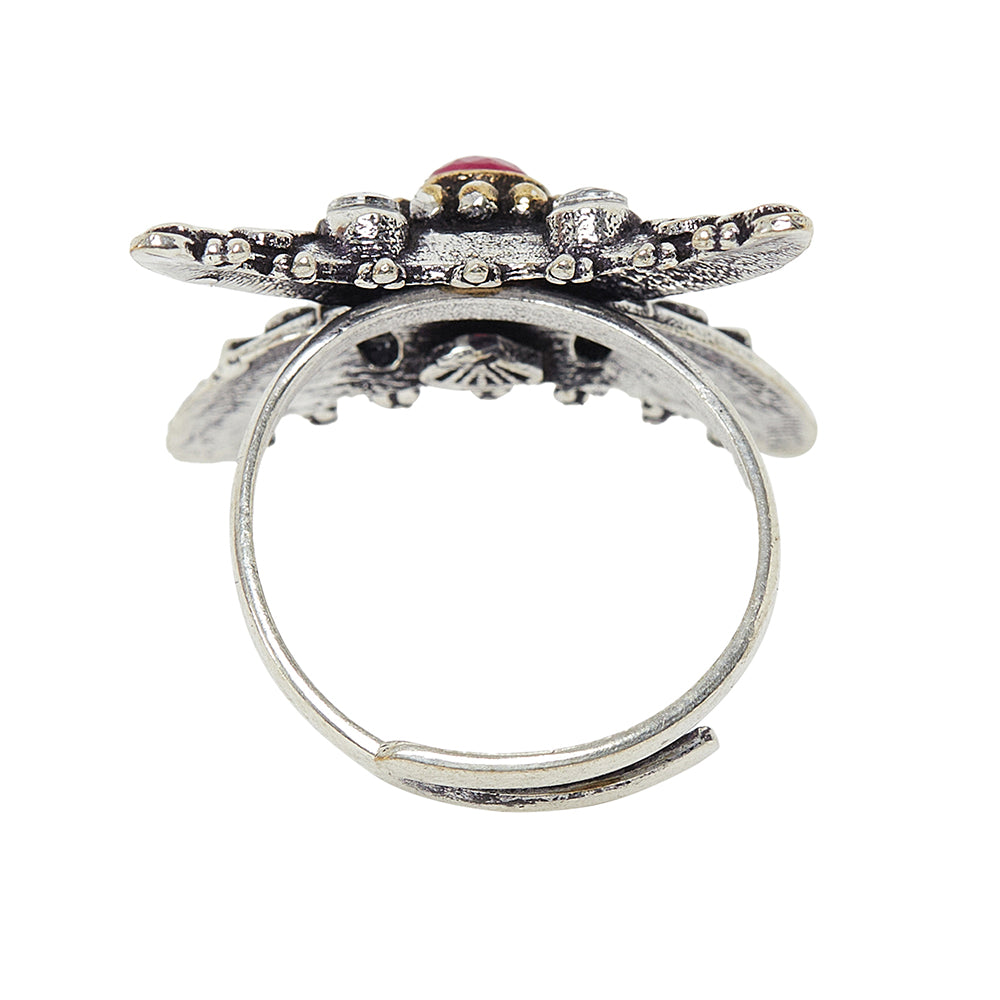 Chamba Tribal Inspired Faux Kundan Adorned Silver Plated Adjustable Brass Ring