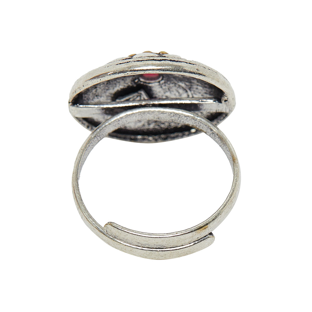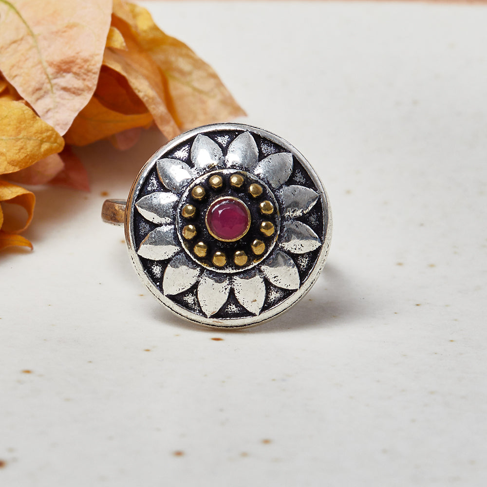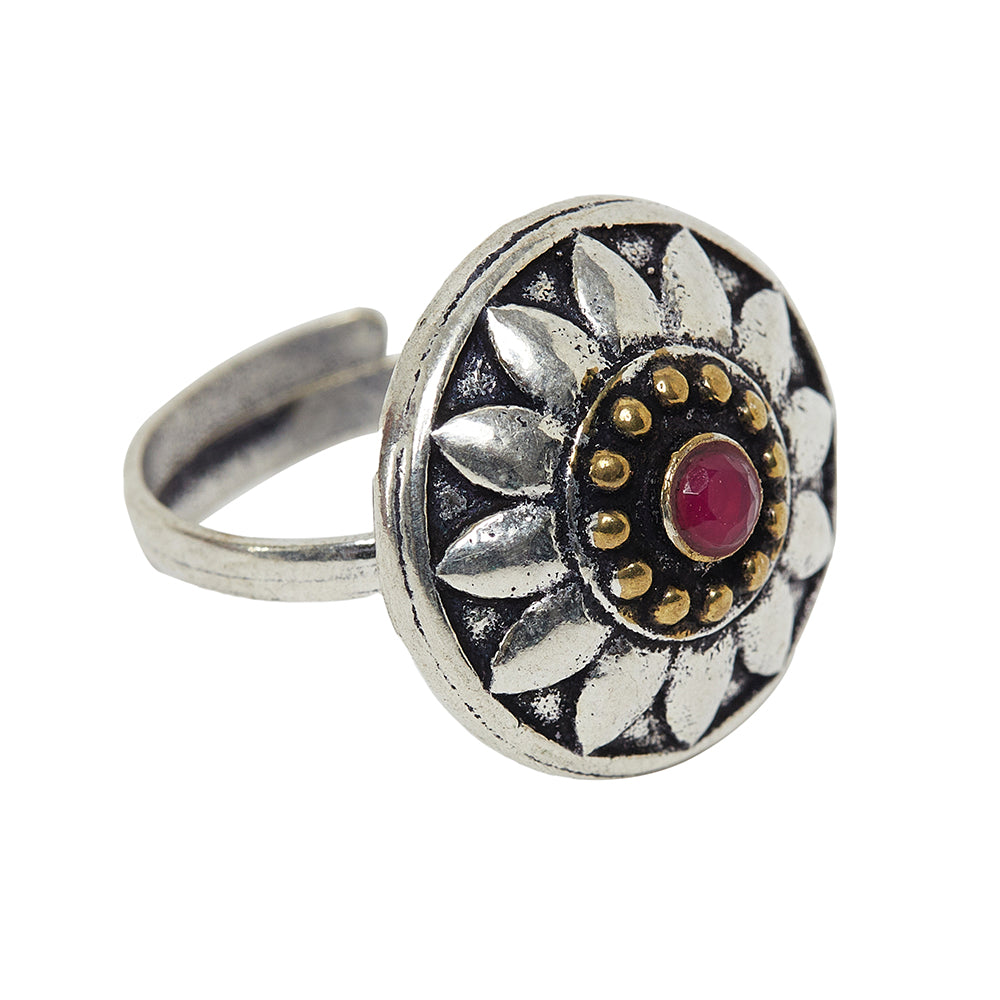 Chamba Vintage Style Floral Silver Plated Adjustable Brass Ring