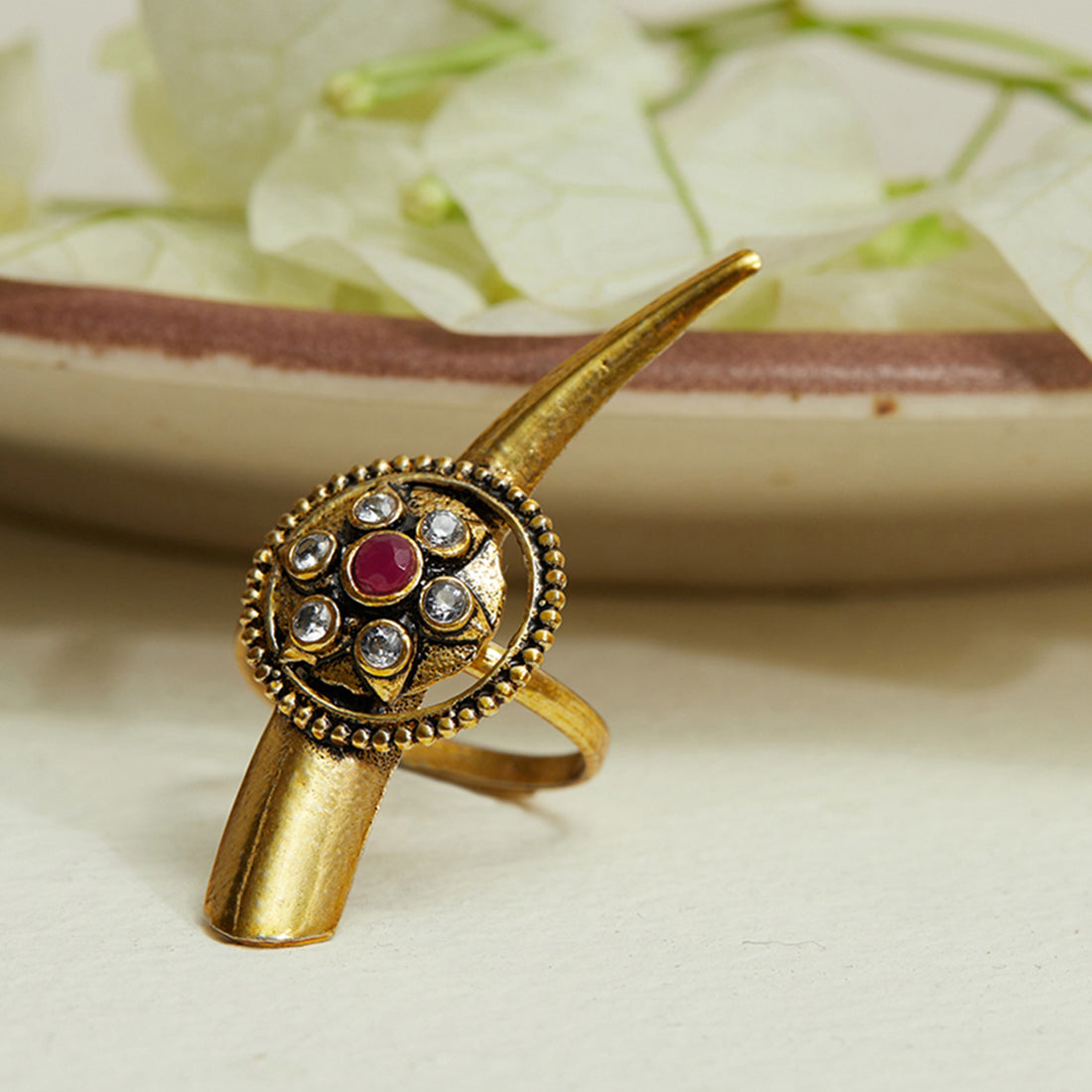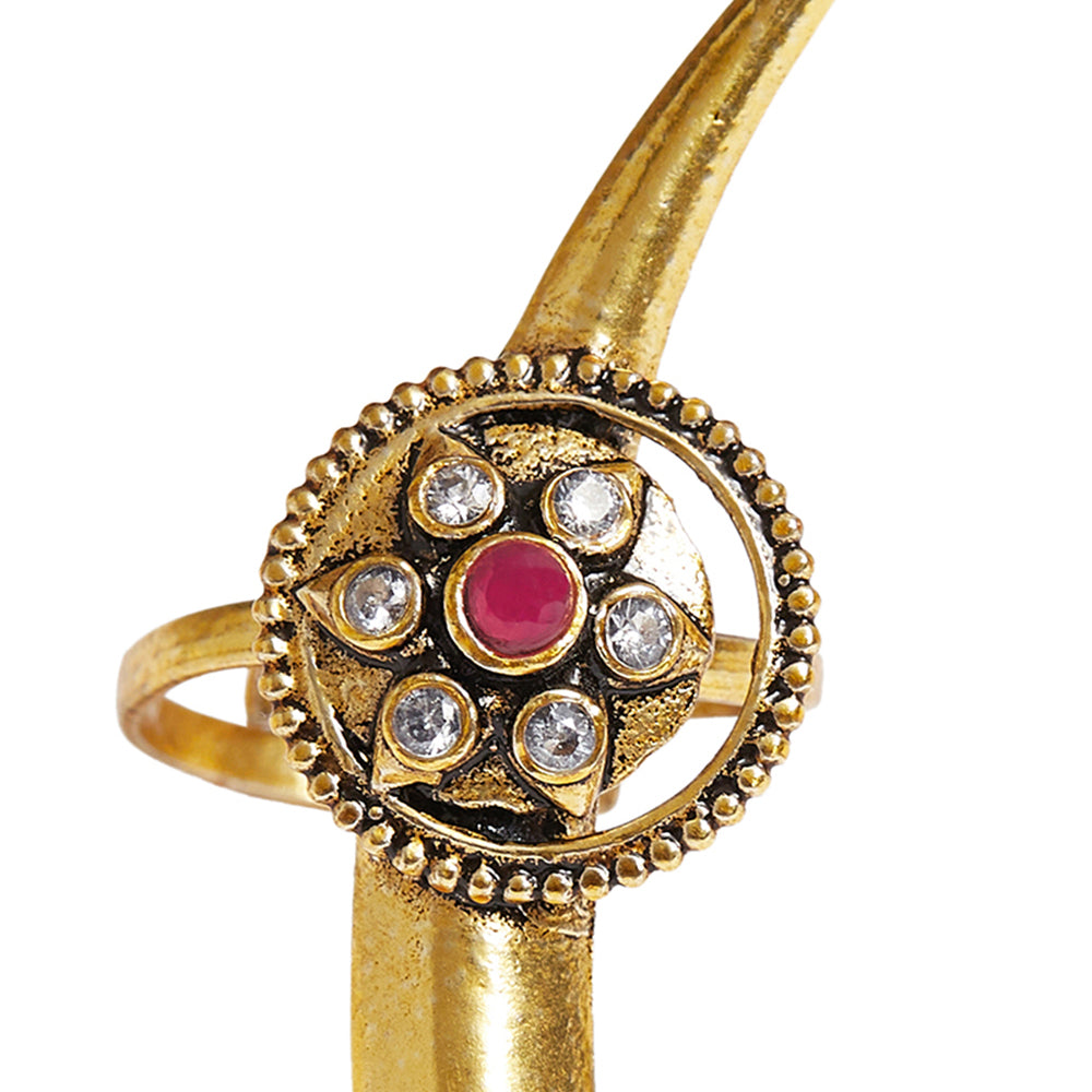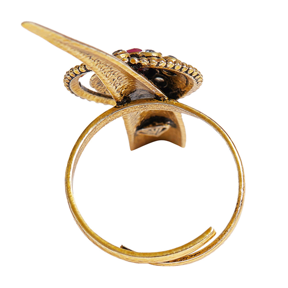 Chamba Yellow Gold Plated Tribal Inspired Brass Adjustable Ring