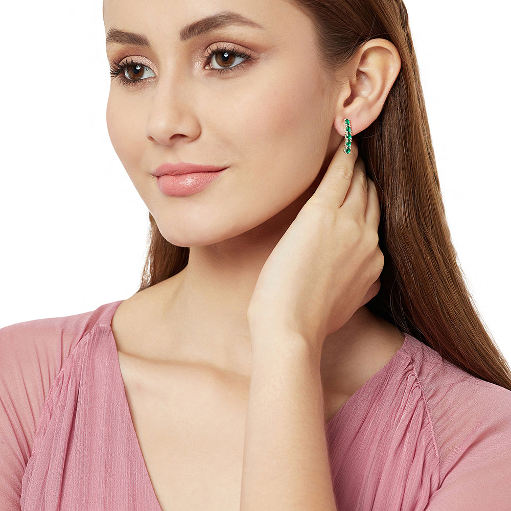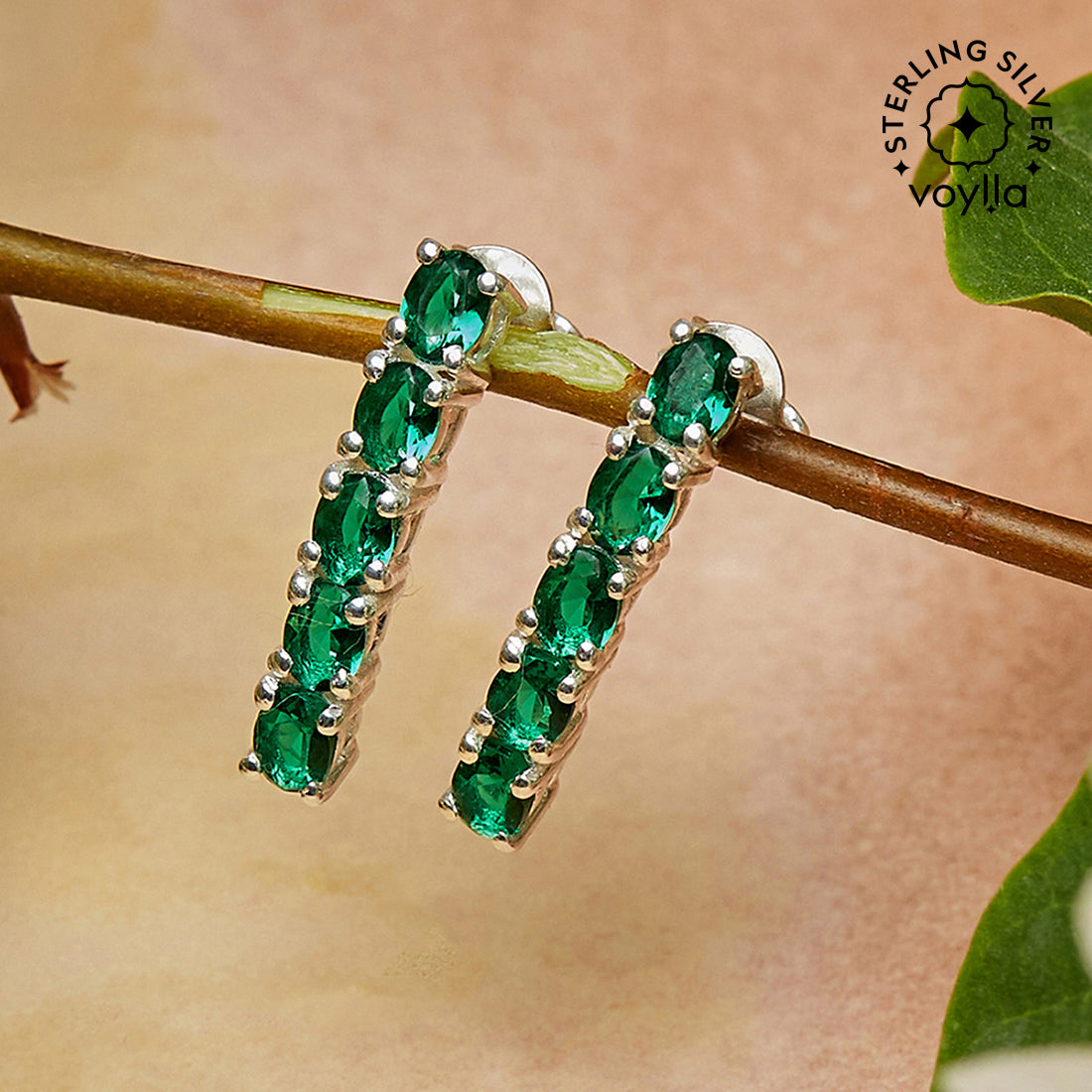 Add an altogether different dimension to your look with this charming sterling silver hoop earrings studded with green stone. Light in weight and easy to wear ,these can be worn all day long.