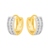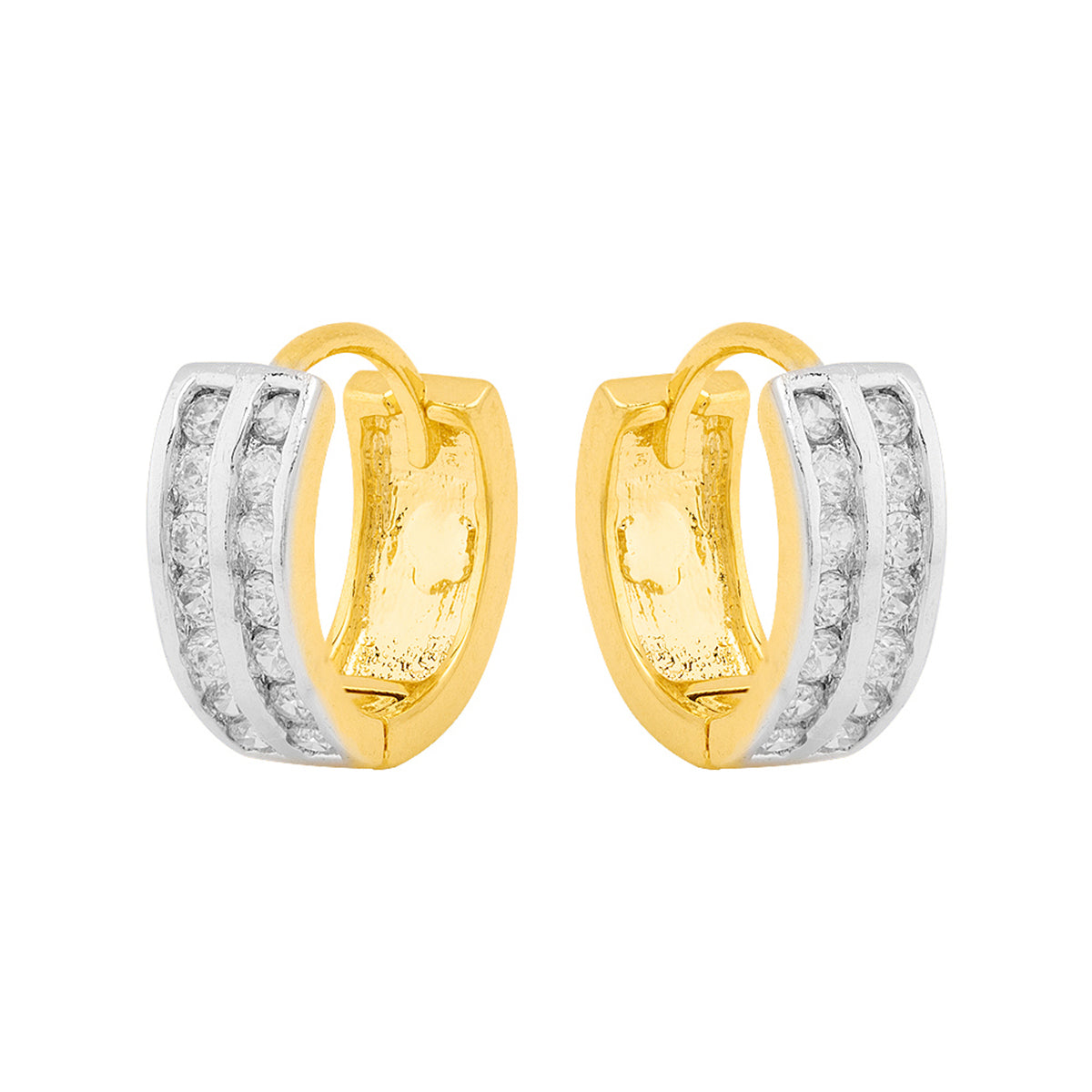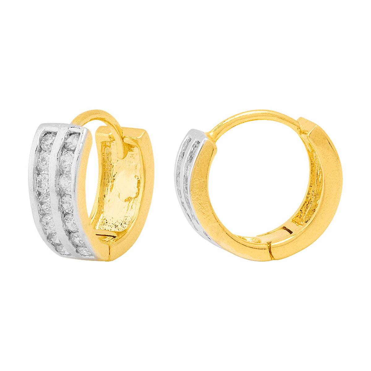 This stunning pair of hoop earrings adds glam and shine to your style quotient. Encrusted with double CZ rows this pair is a must-have. These simple yet alluring pieces add a touch of sparkle to your attire.