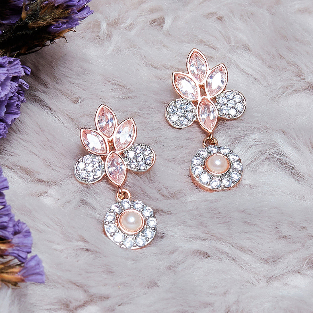 Looking for a fabulous jewelry pair for your next occasion? If yes, then buy this pair of earrings features a beautiful design along with pearl bead establishment. Moreover, these drop earrings are plated with rose gold that makes them unique and chic.