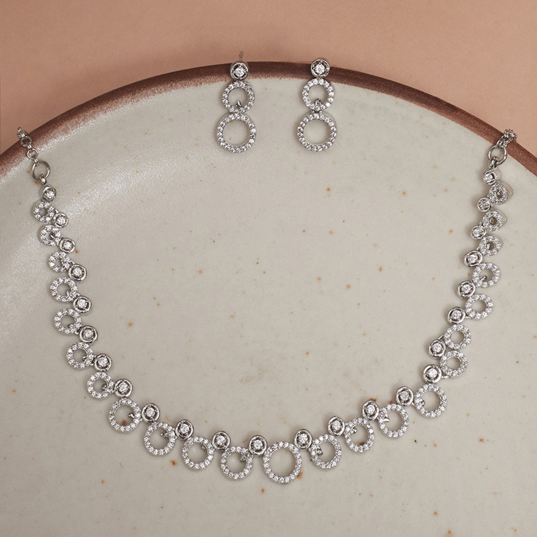 Circles Silver Plated Brass CZ Embellished Jewellery Set