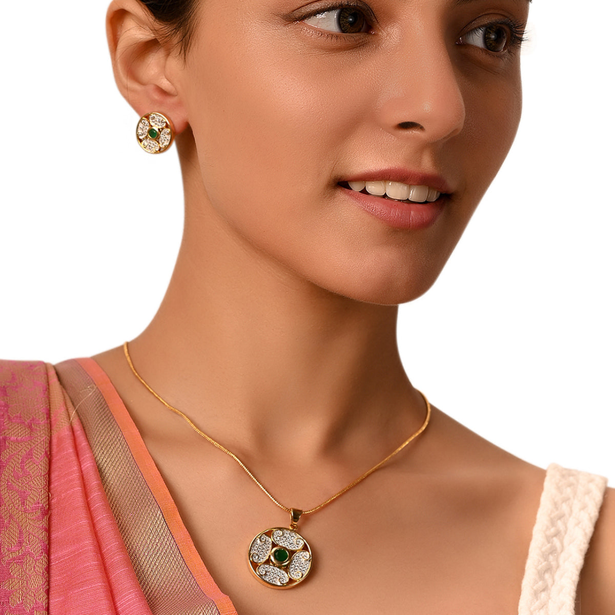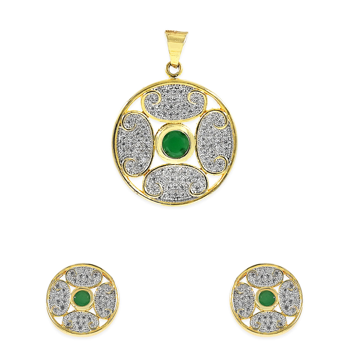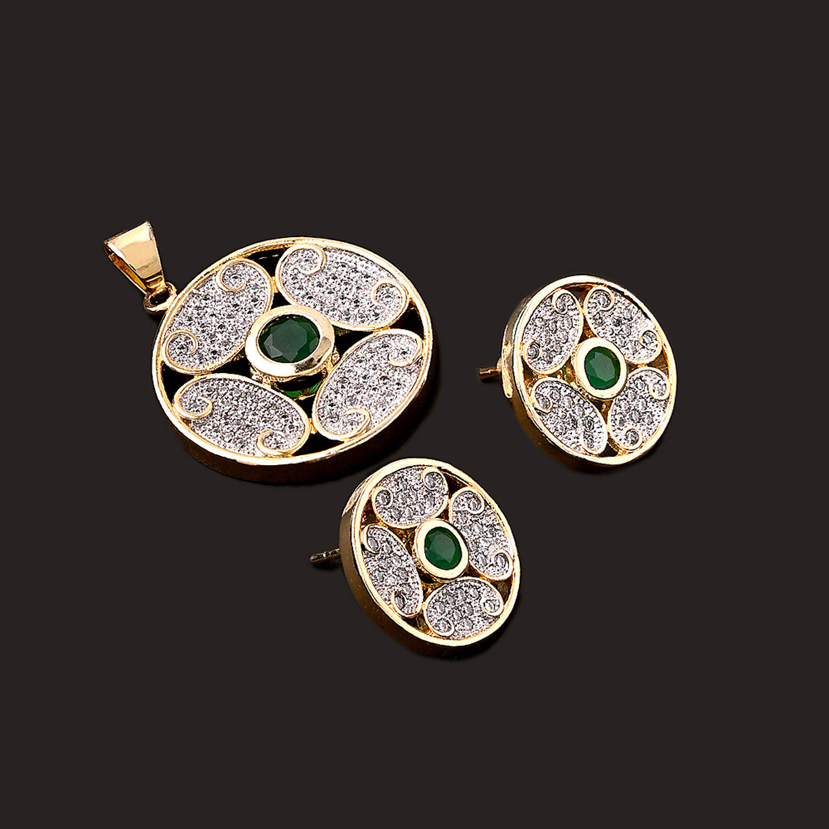 Circular CZ Pendant Set- Green