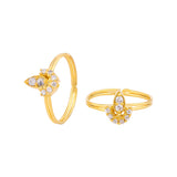 Classic brass toe rings with yellow gold plating. Embellished with American Diamond gems. Good for everyday wear.