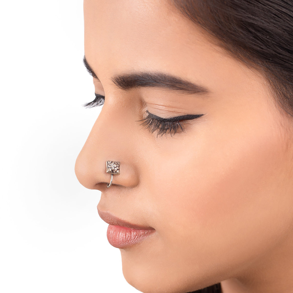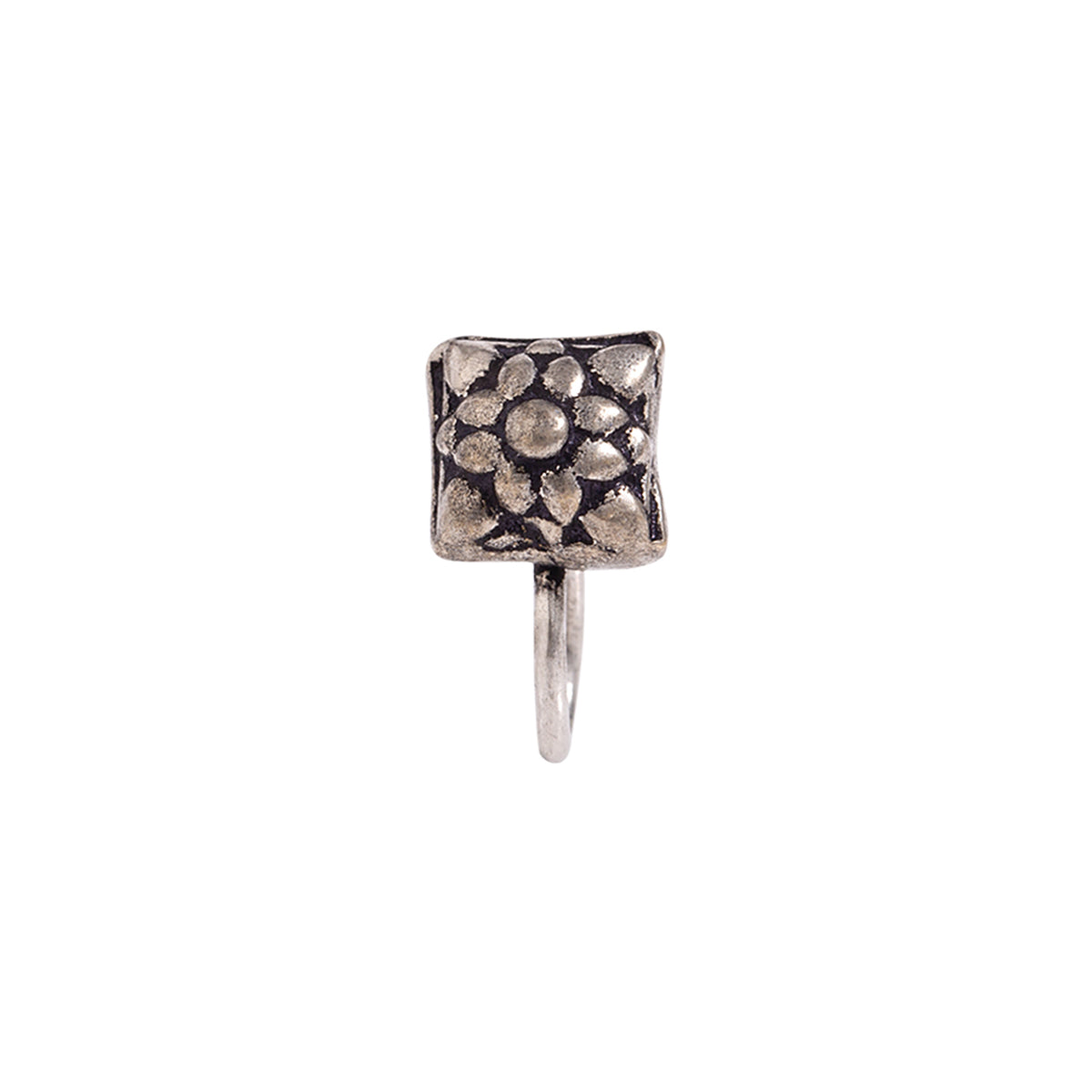Floral nose clip made from brass. Oxidized silver plated and comfortable for everyday wear.