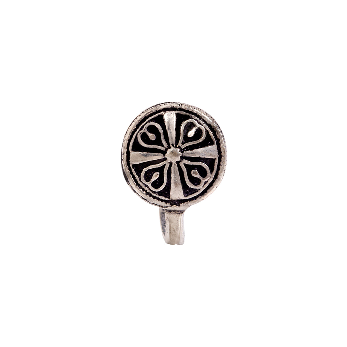 Flower nose clip made from brass and oxidized silver plated. Pair with casual ethnic looks. This piece of jewelry comes with the Voylla assurance of quality and durability.
