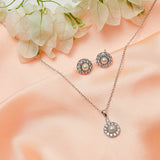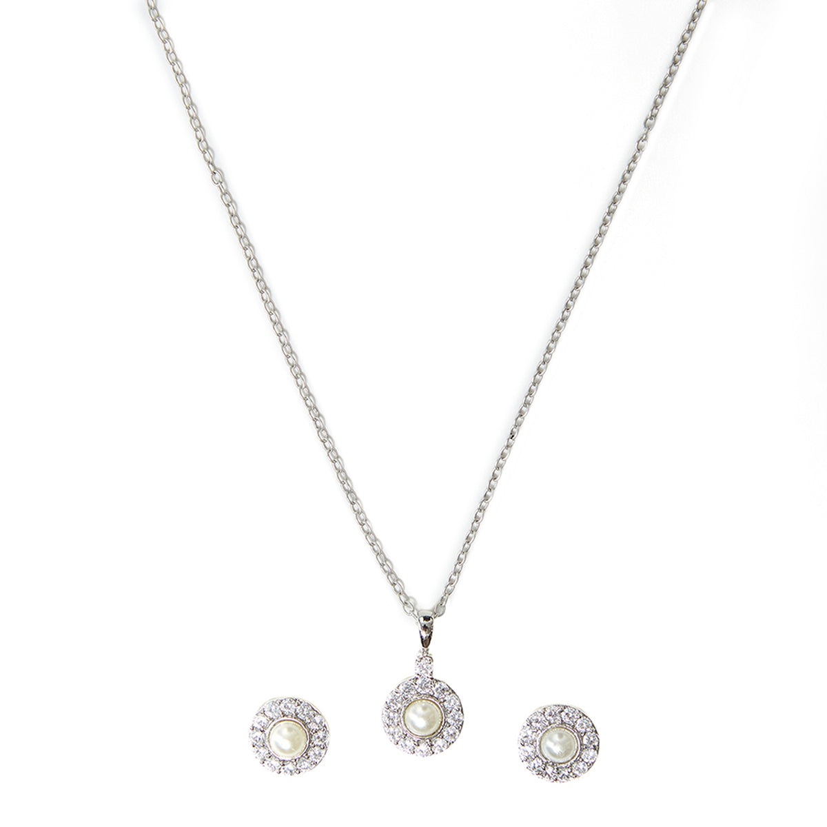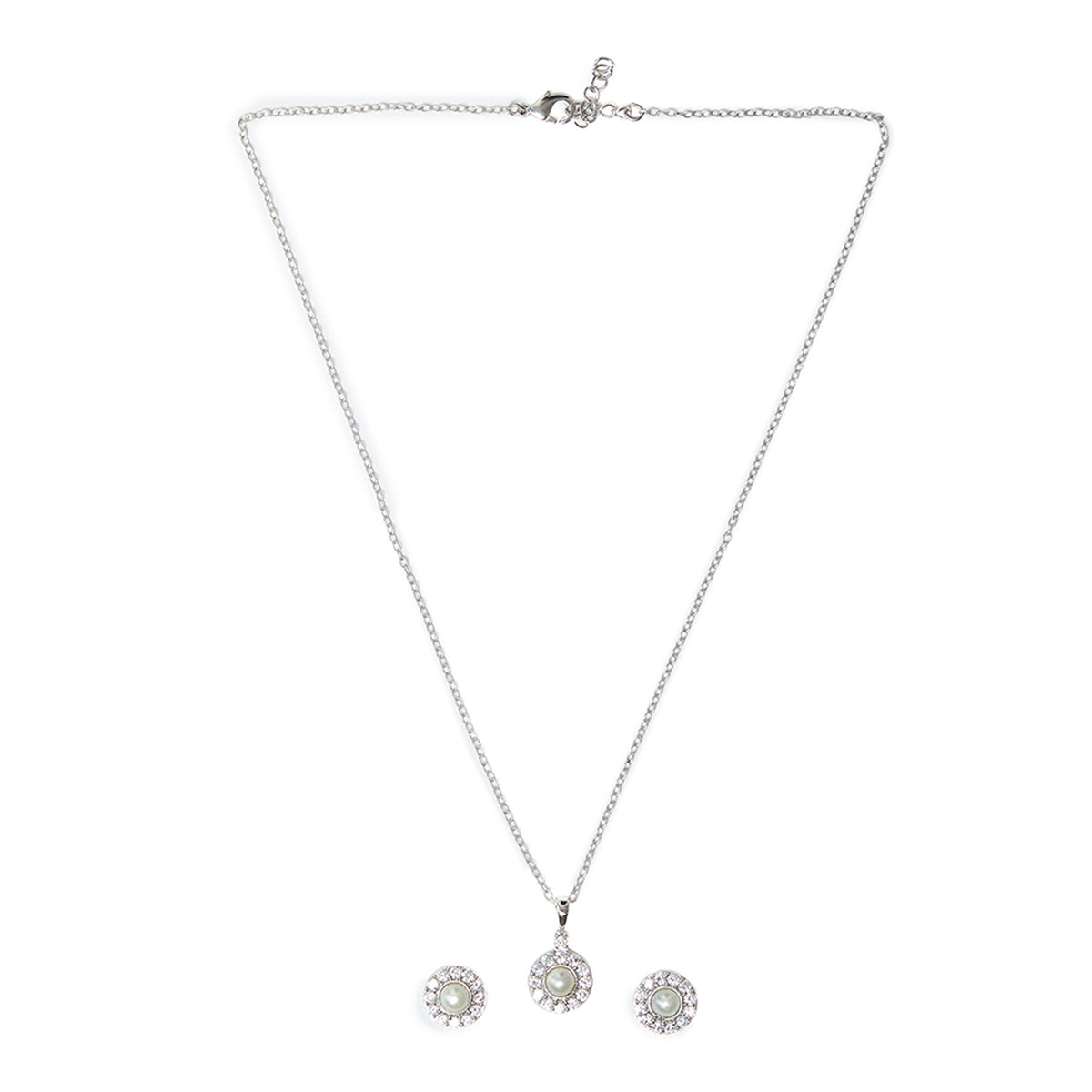 This beautiful silver tone pendant set is for you to enhance your appearance. Beautifully crafted with CZ & pearl bead embellishment. It is the perfect everday wear jewellery.