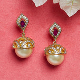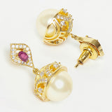 Symbol of mental strength and calmness this pearl studded ring is here for you in an attractive design and shape with gold plating. Simple yet distinctly designed ring is eye-catching and elegant.