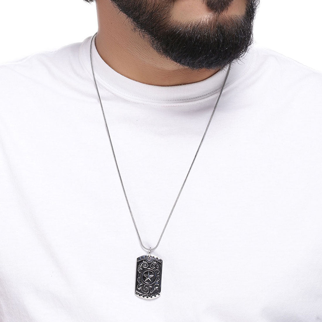 Star pendant crafted from stainless steel and oxidized silver plated. Wear with a gold or silver chain. To make your accessories last longer avoid harsh chemicals and moisture. Keep dry, clean with dry cloth and wear with panache. "India’s largest fashion jewelry brand DARE, comes from the House of Voylla as a limited edition of handcrafted accessories for the modern Indian men. "