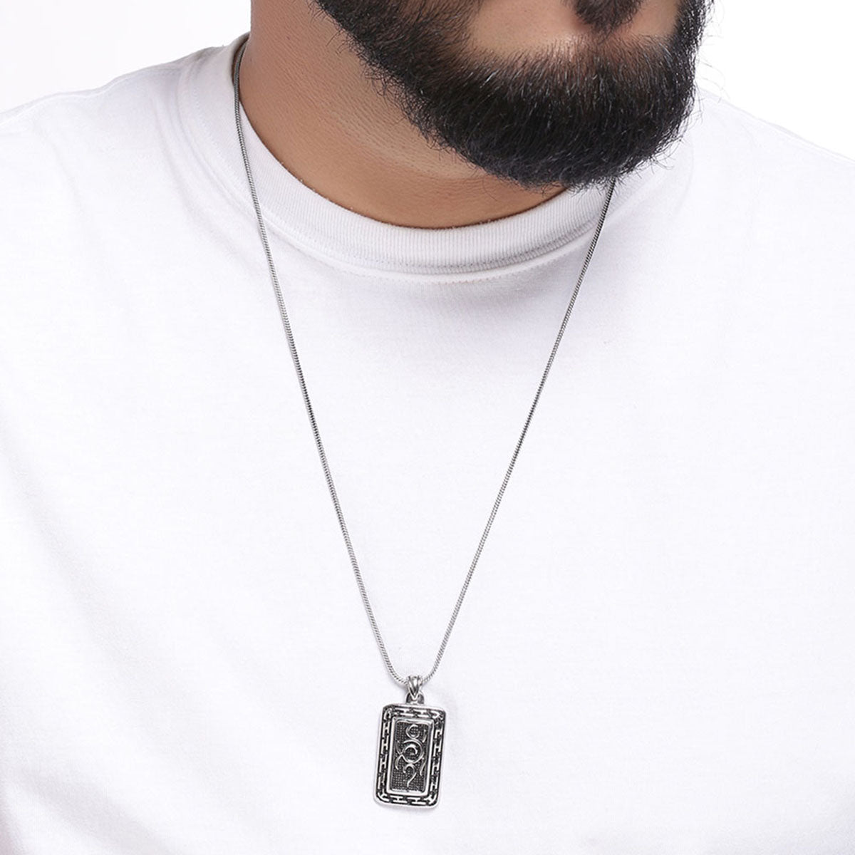 Textured surface pendant made from stainless steel. Oxidized silver plated and good for casual wear. To make your accessories last longer avoid harsh chemicals and moisture. Keep dry, clean with dry cloth and wear with panache. "India’s largest fashion jewelry brand DARE, comes from the House of Voylla as a limited edition of handcrafted accessories for the modern Indian men. "