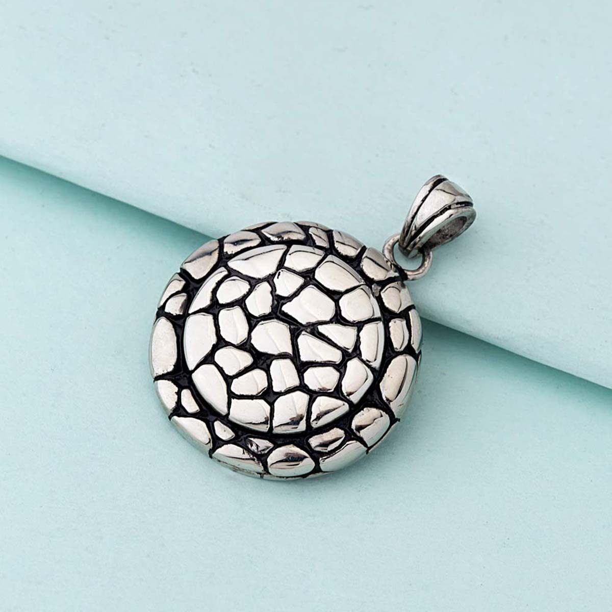 Tortoise motif pendant fashioned out of stainless steel and oxidized silver plated. Good match for party outfits. To make your accessories last longer avoid harsh chemicals and moisture. Keep dry, clean with dry cloth and wear with panache. "India’s largest fashion jewelry brand DARE, comes from the House of Voylla as a limited edition of handcrafted accessories for the modern Indian men. "