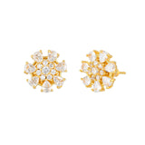 Cluster setting white teardrop cut CZ gems stud earrings. Made from brass and gold plated. A good match for casual looks.