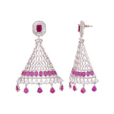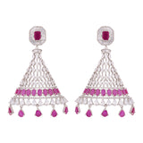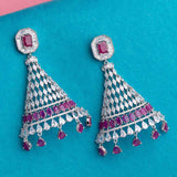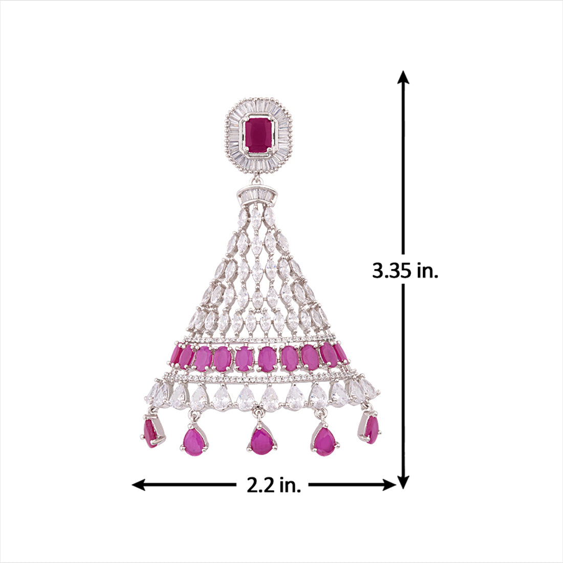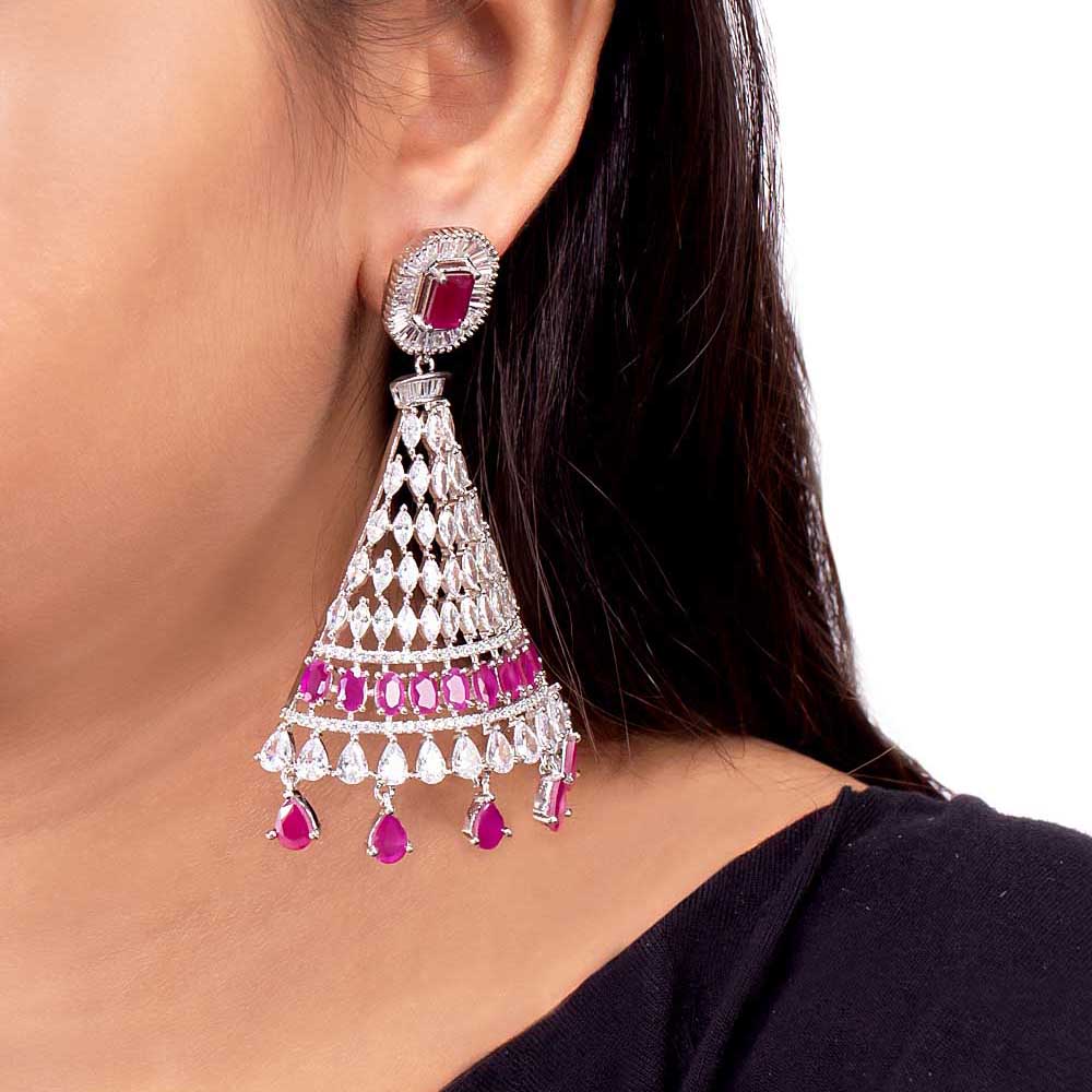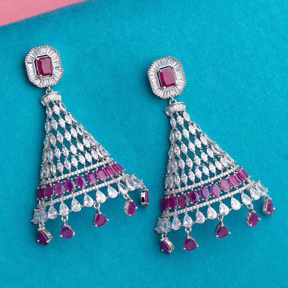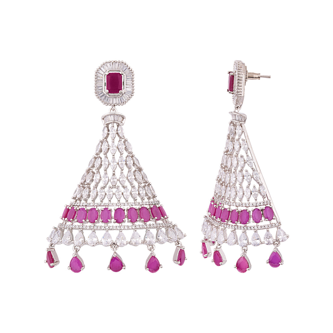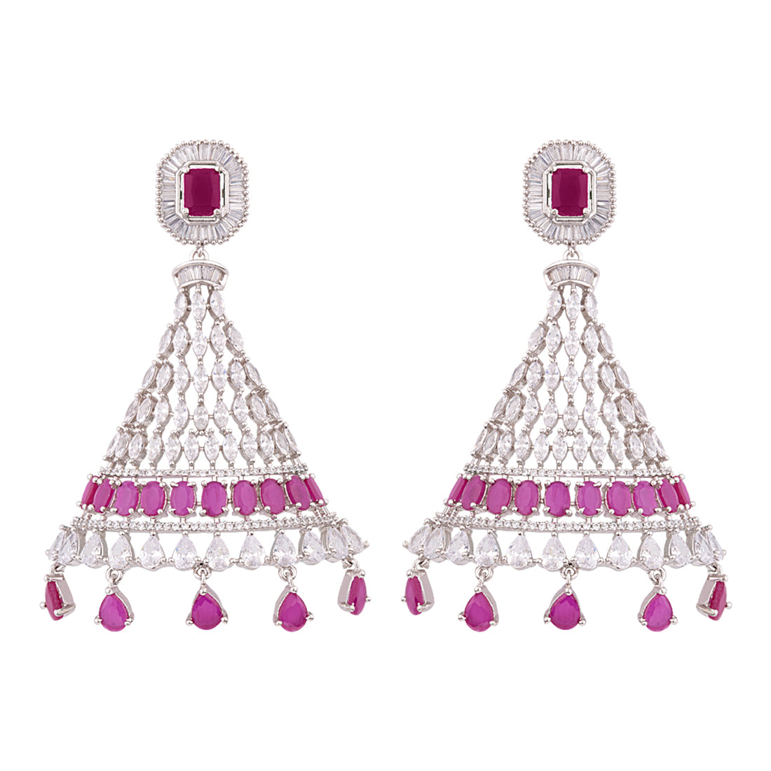 Drop earrings embellished with American Diamond gems. Made from brass and silver plated, the pair will look splendid with a cocktail gown.