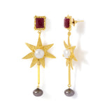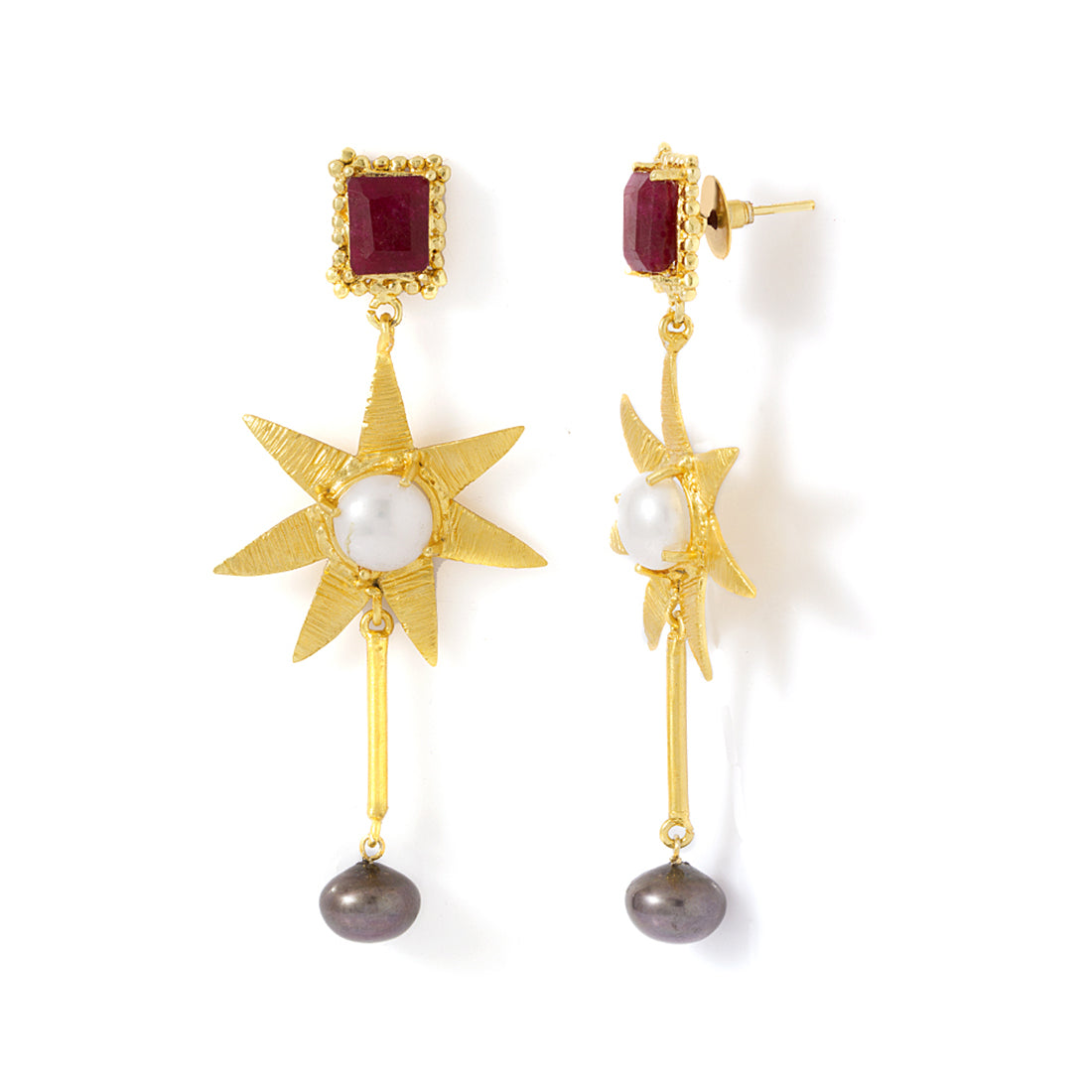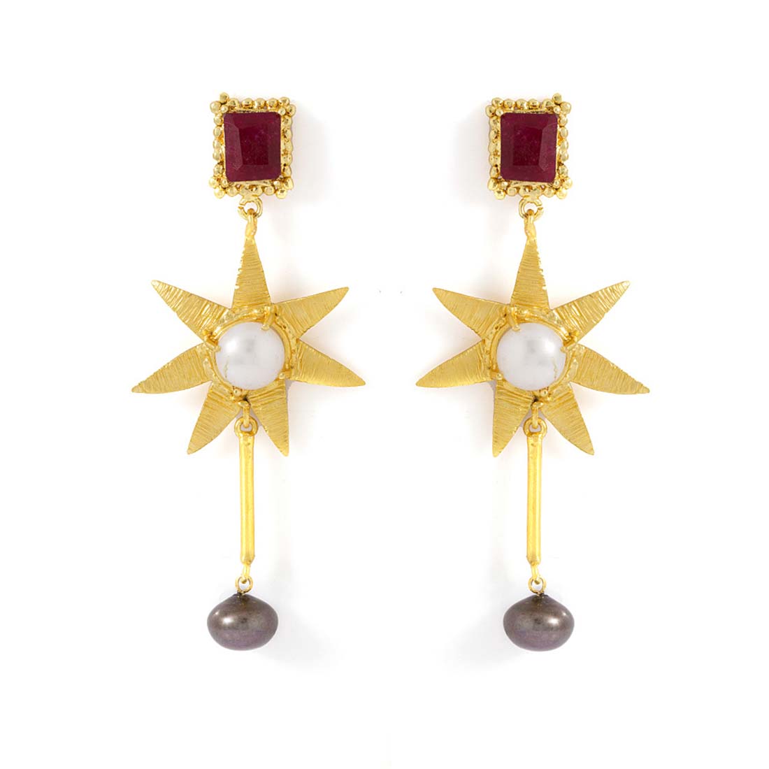 These stunning start shaped earrings feature embellishment of colorful stones and pearl beads. Its sheeny gold tone and alluring design compliments its look. Wear these danglers on parties to flaunt your jewelry taste.