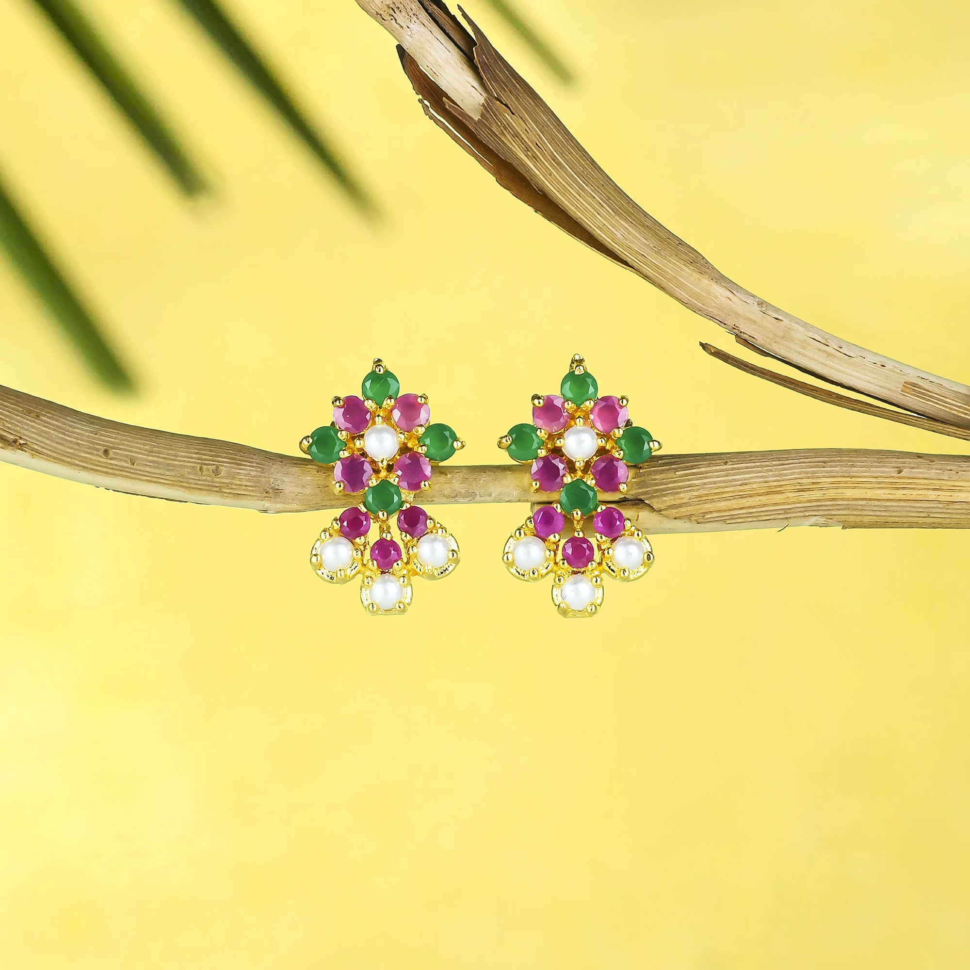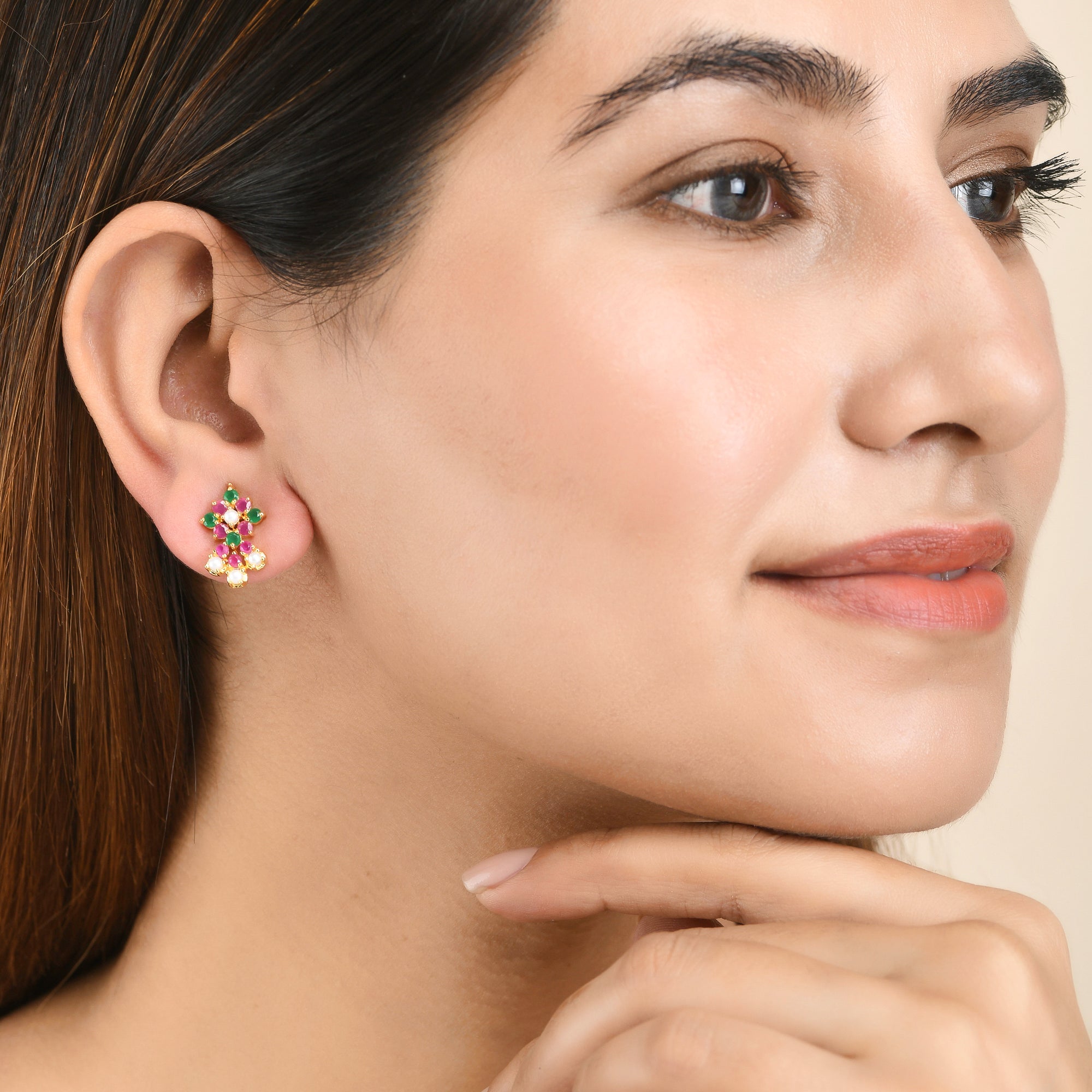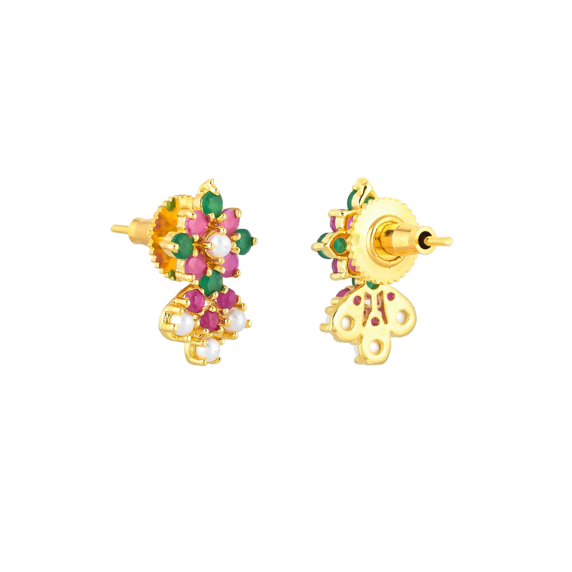Coloured CZ gems in classic teardrop cut adorned these brass stud earrings, which have been given a gold plating. Pair with any of your favourite casual outfits.