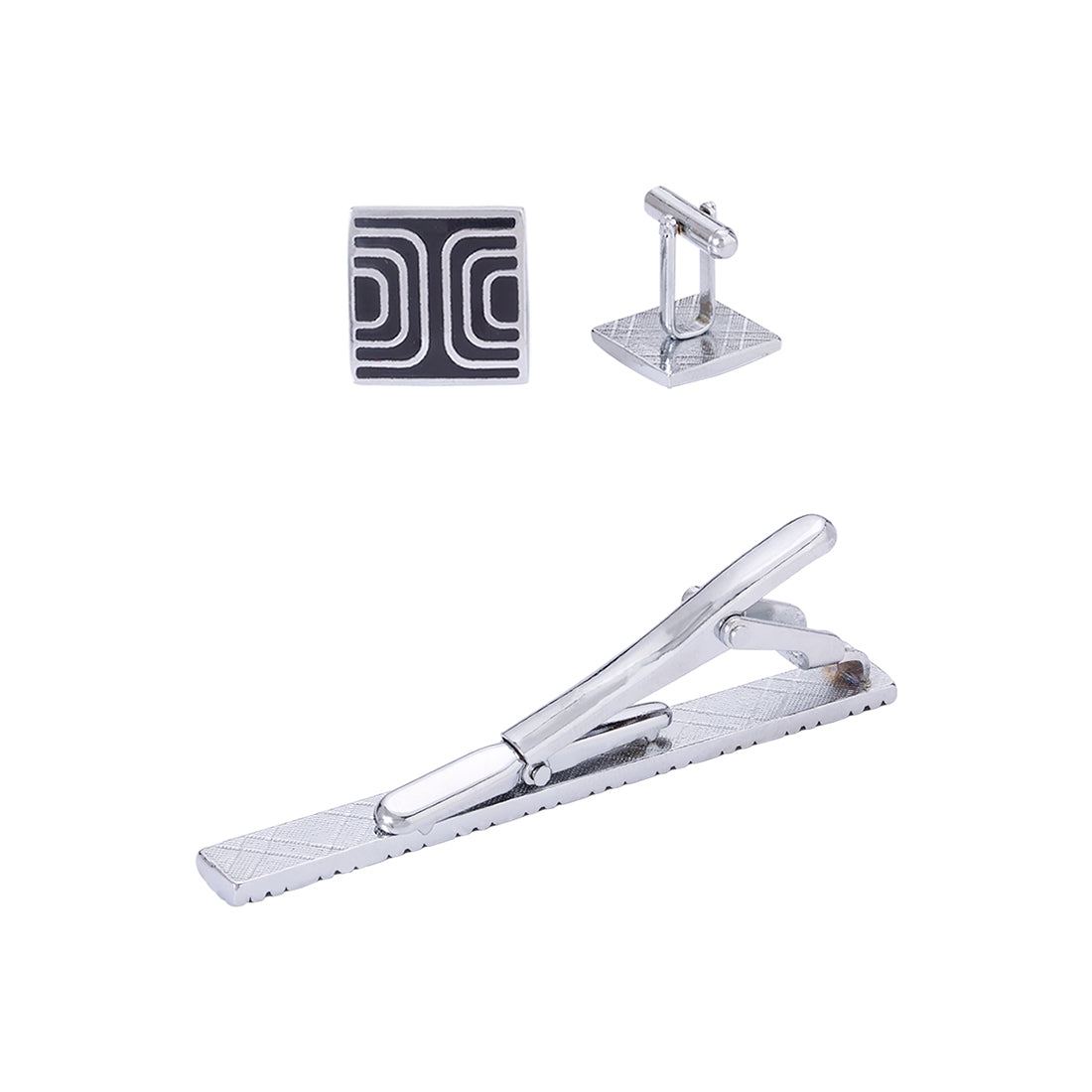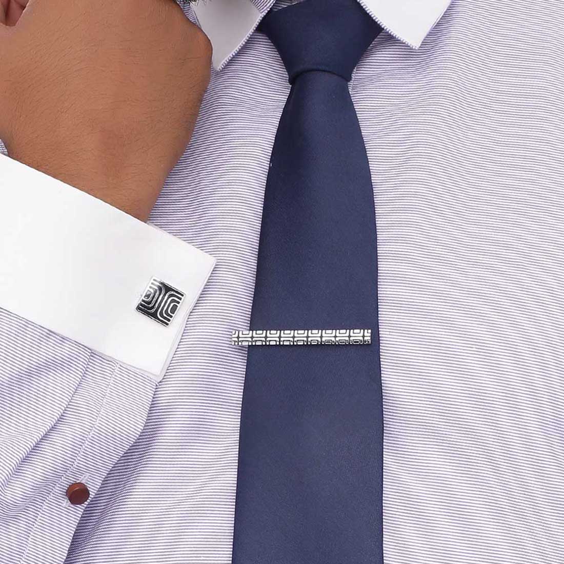 Aztec pattern cufflink tiepin set. Fashioned out of stainless steel and two tone plated. Pair with formal looks. To make your accessories last longer avoid harsh chemicals and moisture. Keep dry, clean with dry cloth and wear with panache. "India?s largest fashion jewelry brand DARE, comes from the House of Voylla as a limited edition of handcrafted accessories for the modern Indian men. "