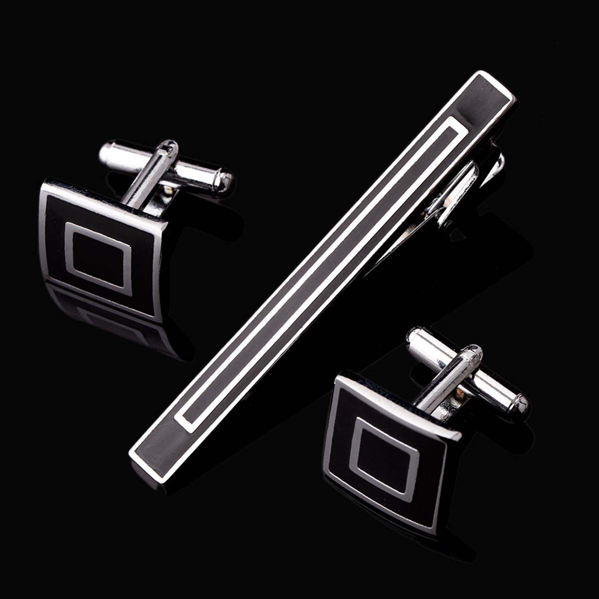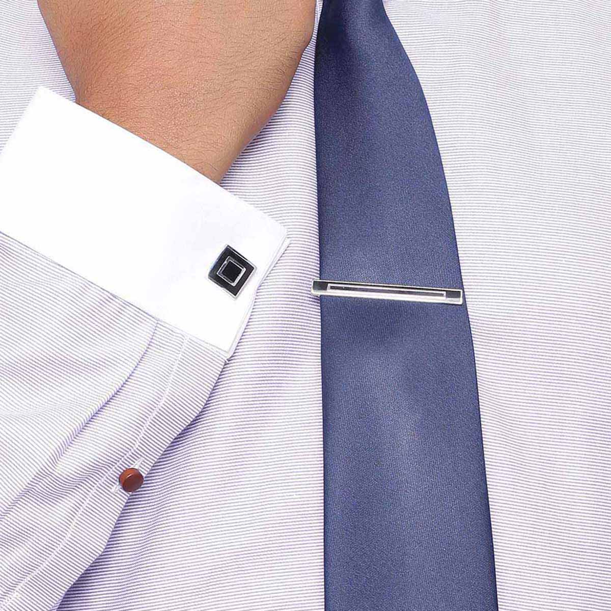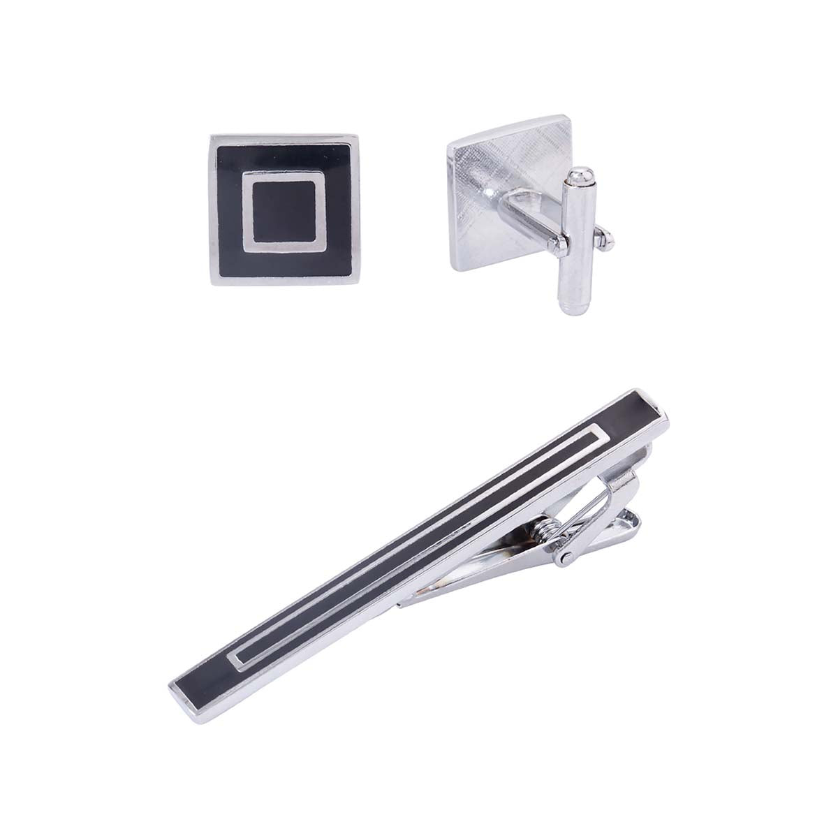 Square motifs cufflink tiepin set. Made from stainless steel and two tone plated. Wear with formal attire.