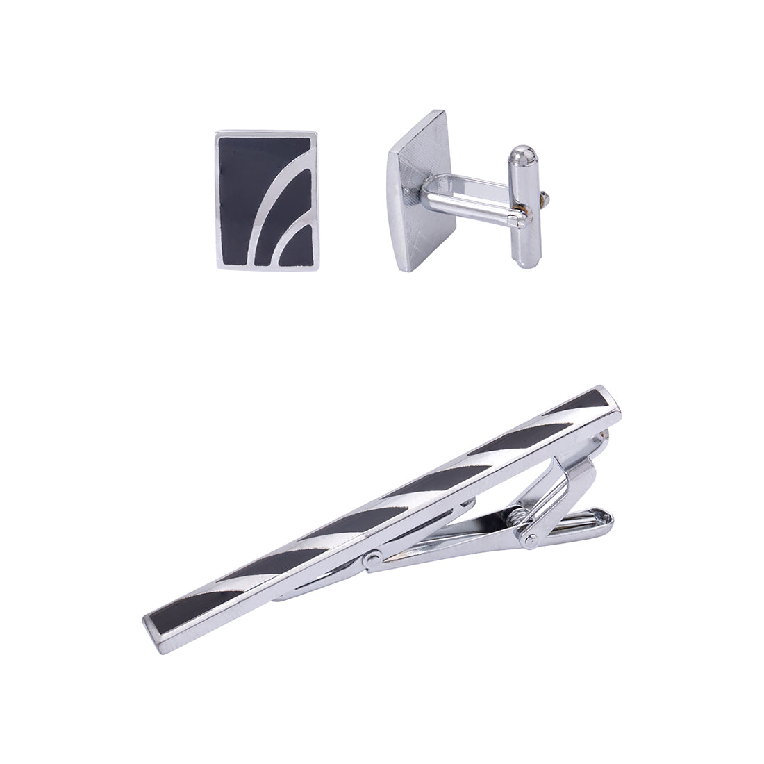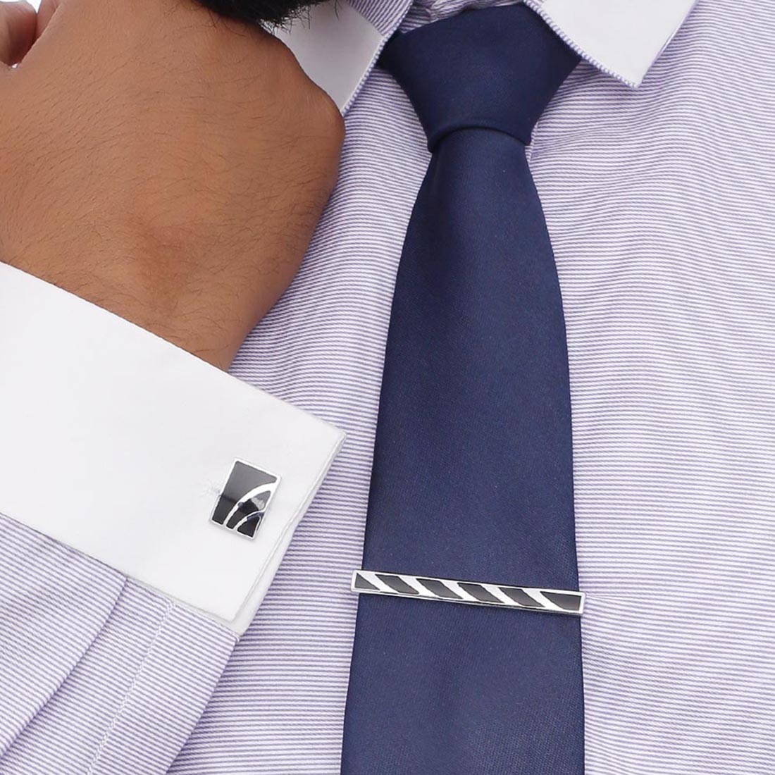 Striped cufflink tiepin set. Made from stainless steel and two tone plated. Pair with formal attire. To make your accessories last longer avoid harsh chemicals and moisture. Keep dry, clean with dry cloth and wear with panache. "India?s largest fashion jewelry brand DARE, comes from the House of Voylla as a limited edition of handcrafted accessories for the modern Indian men. "