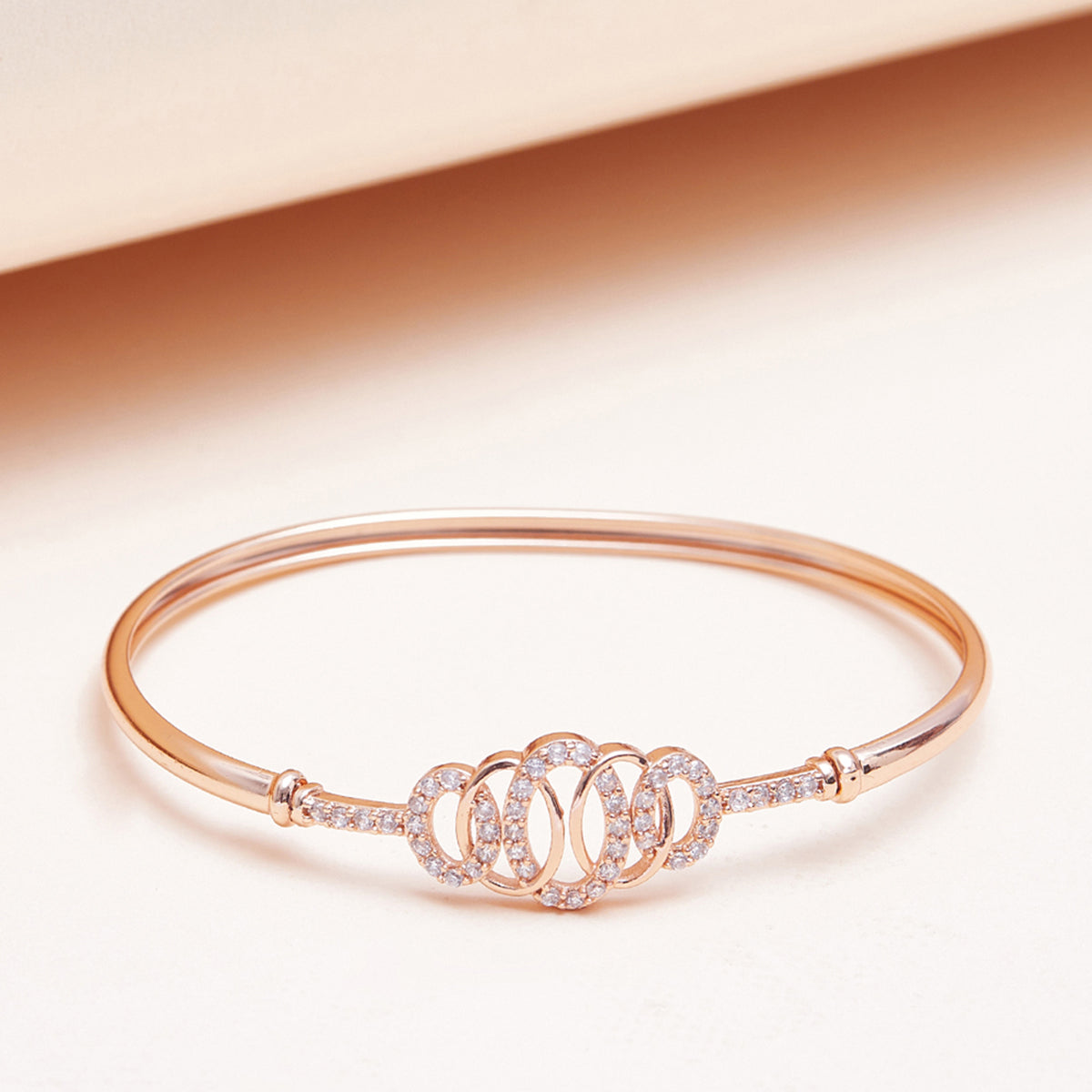 Sometimes, it is good to be extra with your jewellery as it brings EXTRA joy! This royal crown-inspired bracelet gives that extra charm to your hands as it beautifully settles on your wrist. The subtle finish of the rose gold overlay, when combined with Royal designs and minimal shining gemstones, creates masterpieces like this bracelet. This beautiful hand jewellery comes from one of the most sought-after collections- Sparkling Elegance, which rightly justifies the jewels' name and allure.