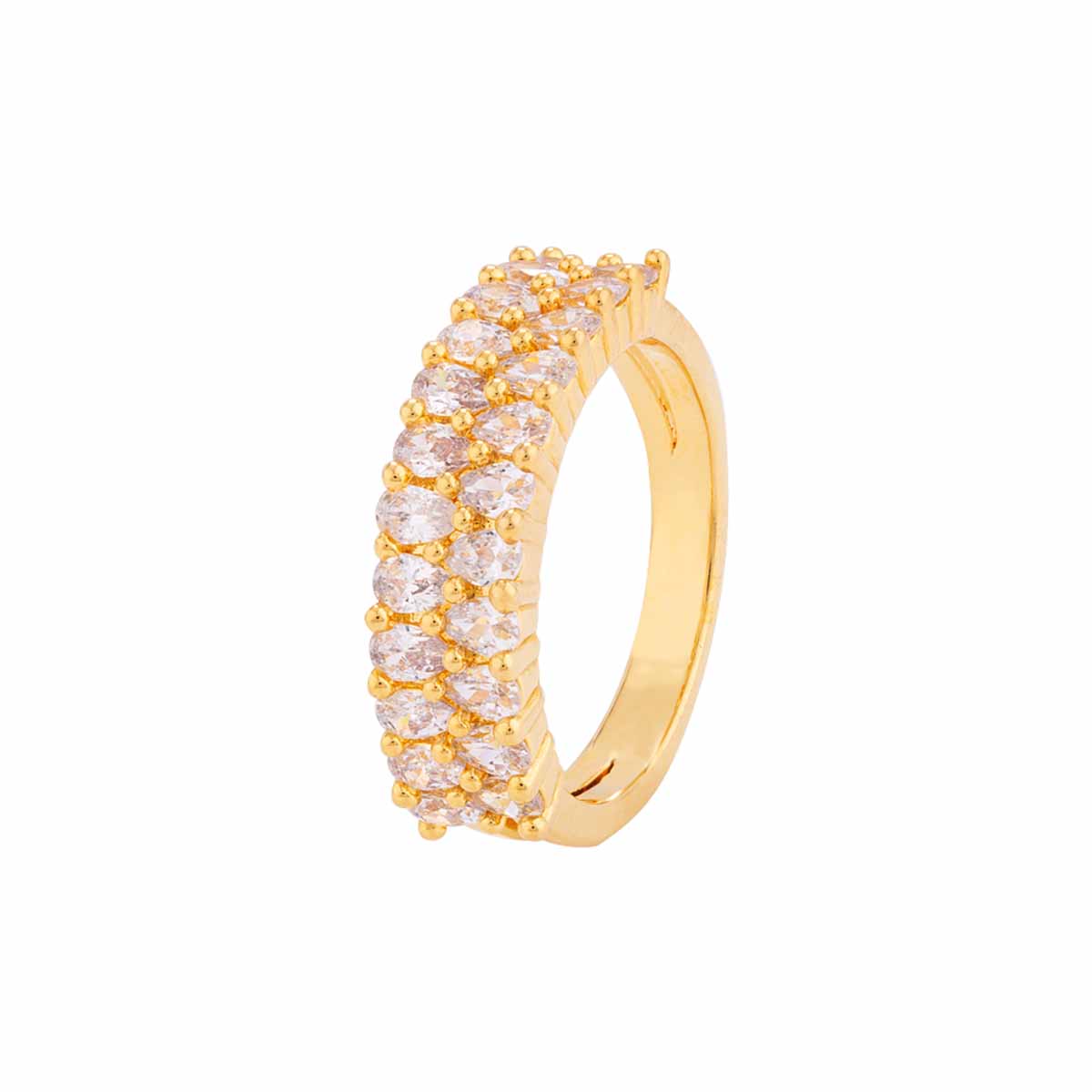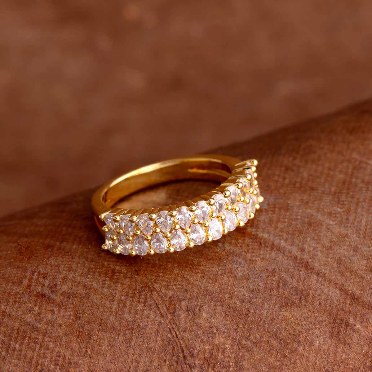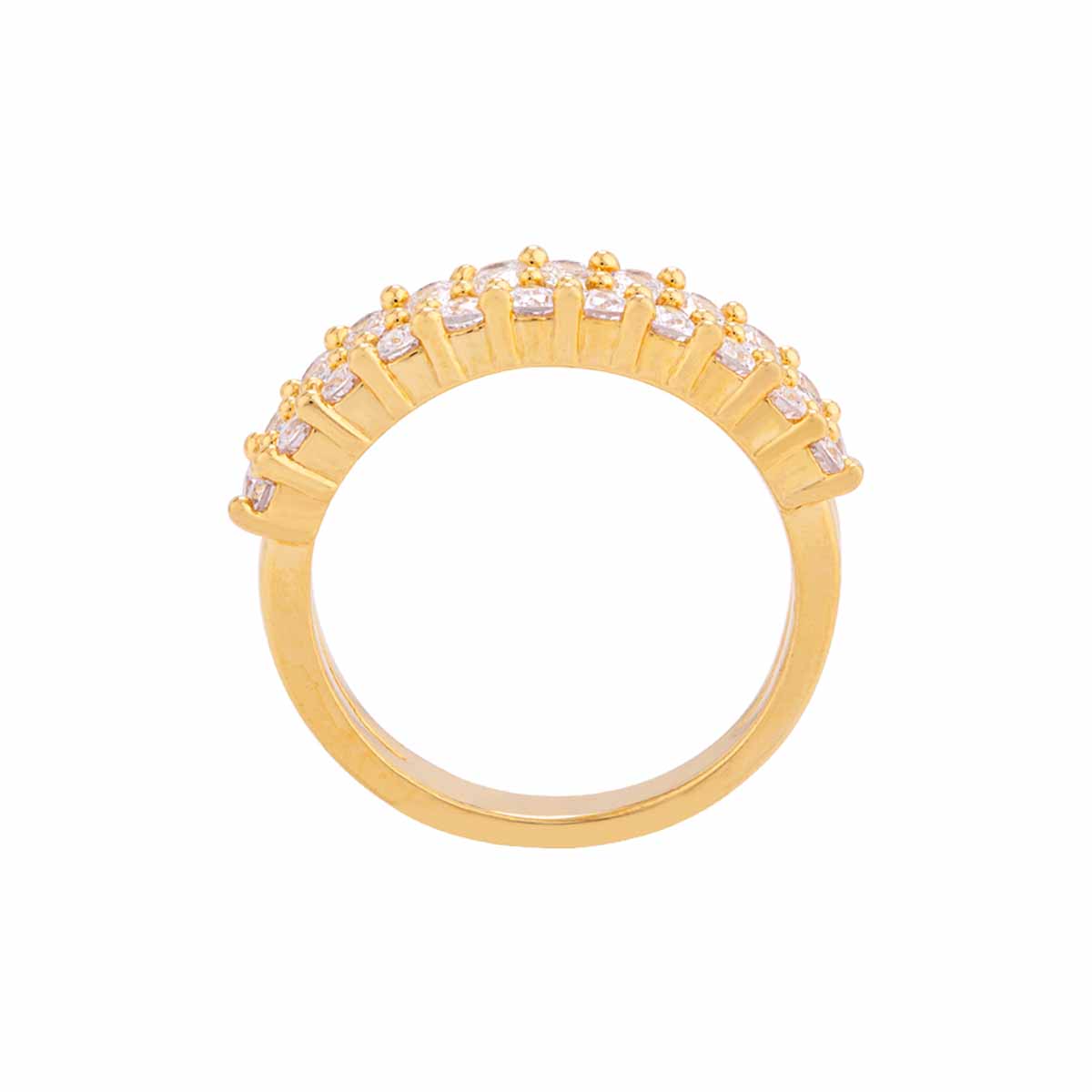 Crown motif ring made from brass and yellow gold plated. Adorned with CZ gems and good for formal wear.
