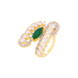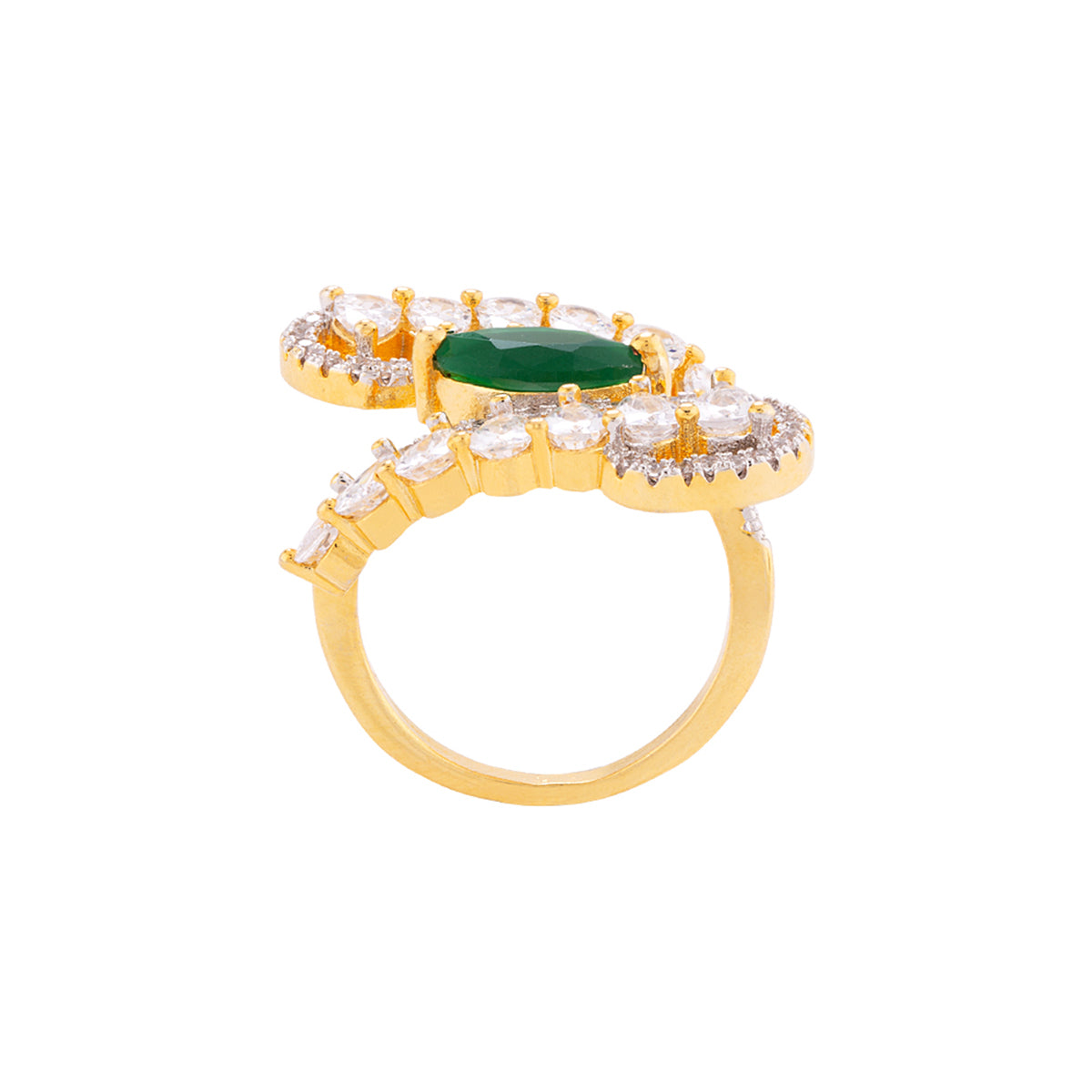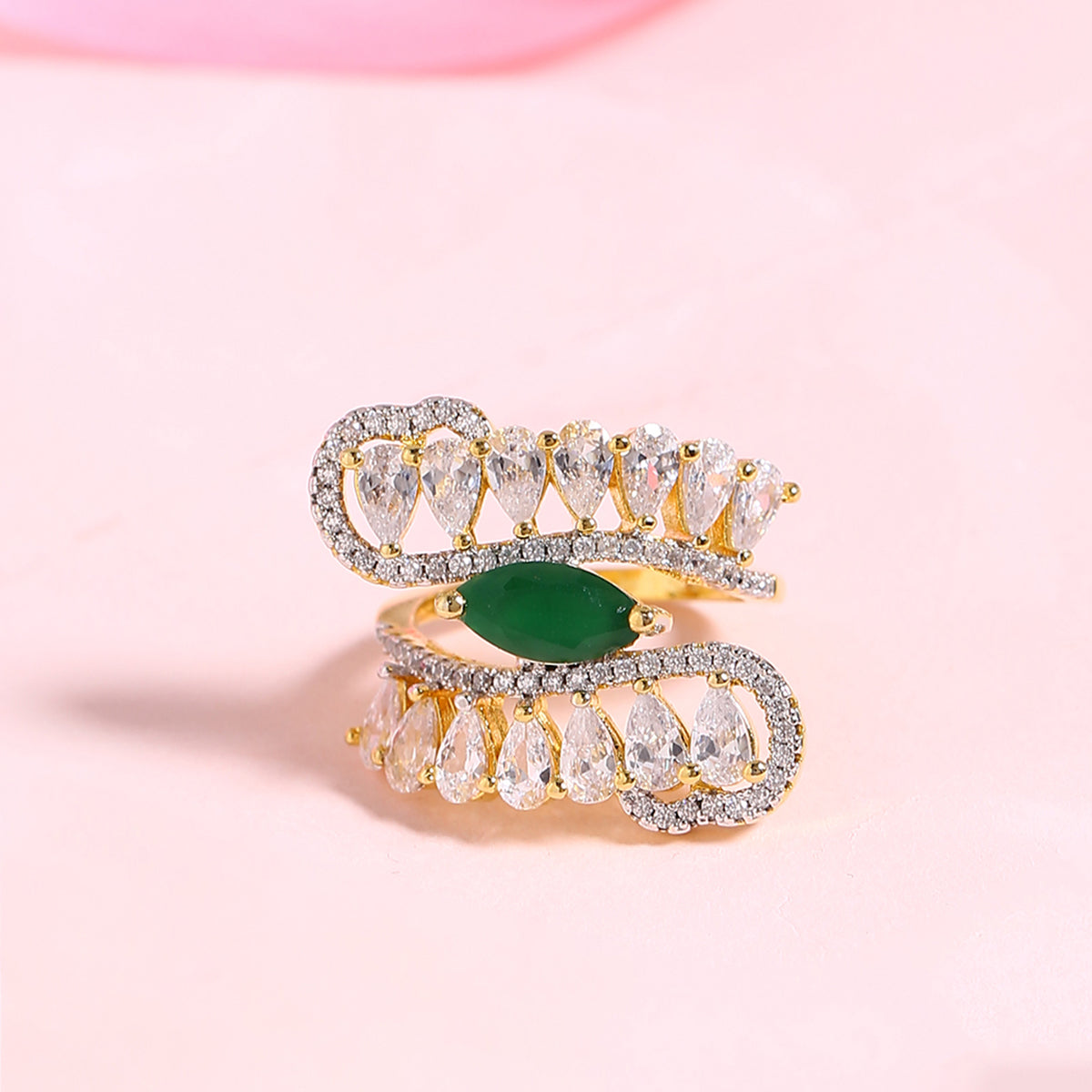 Featuring a cutwork design, this CZ gems embellished ring has been crafted from brass. Two tone plated and good for formal wear. This piece of jewelry comes with the Voylla assurance of quality and durability.