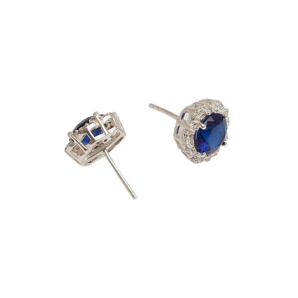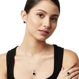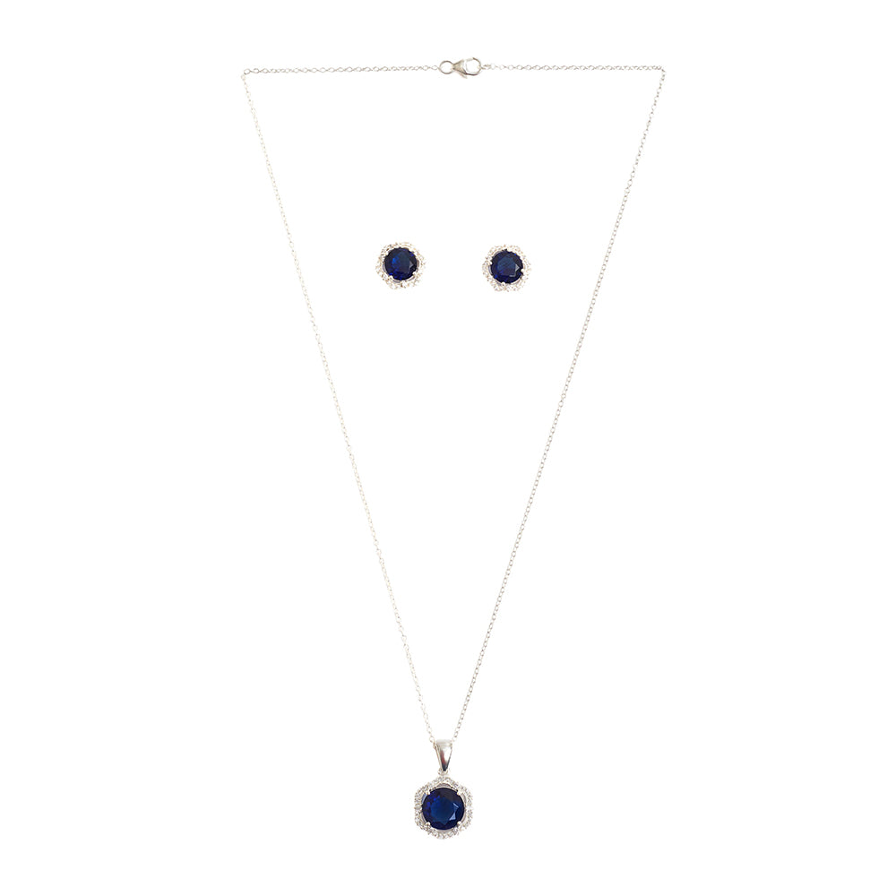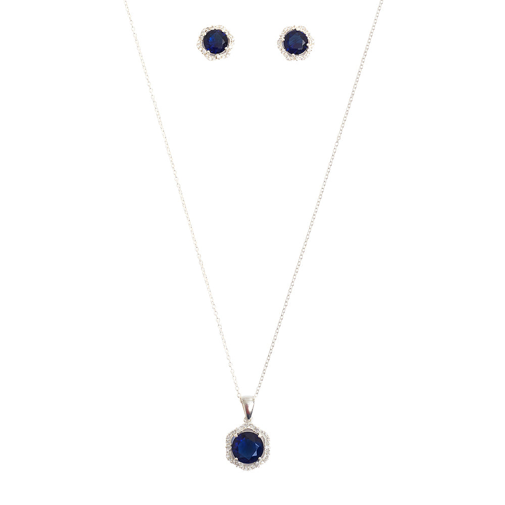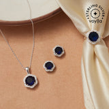 CZ Cluster Blue Hexagonal Pendant, Earring and Ring 925 Sterling Silver Set