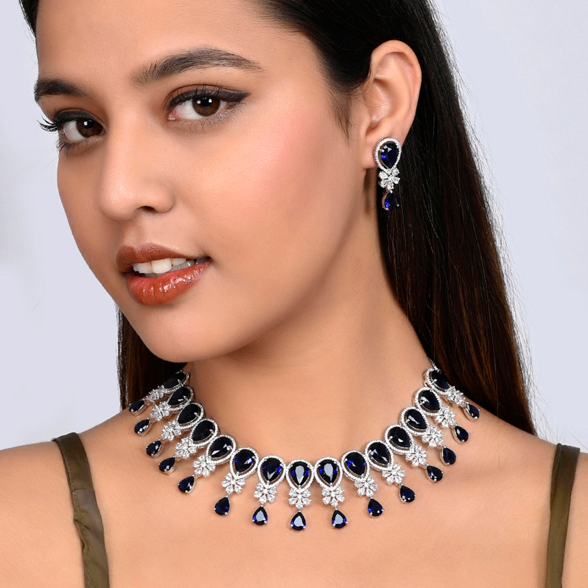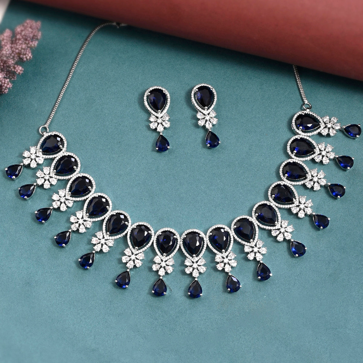 CZ Elegance Blue Teardrop Zircons Jewellery Set