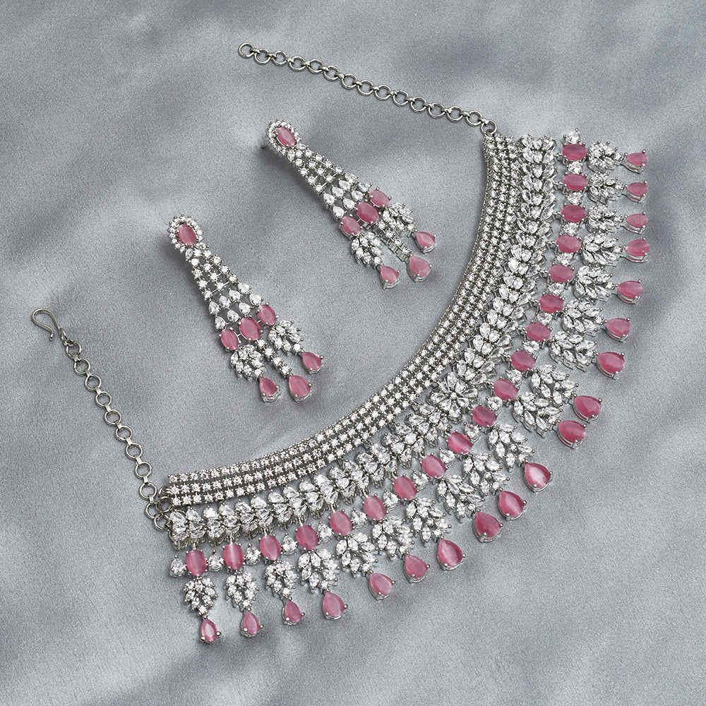 CZ Elegance Heavily Embellished Brass Necklace Set