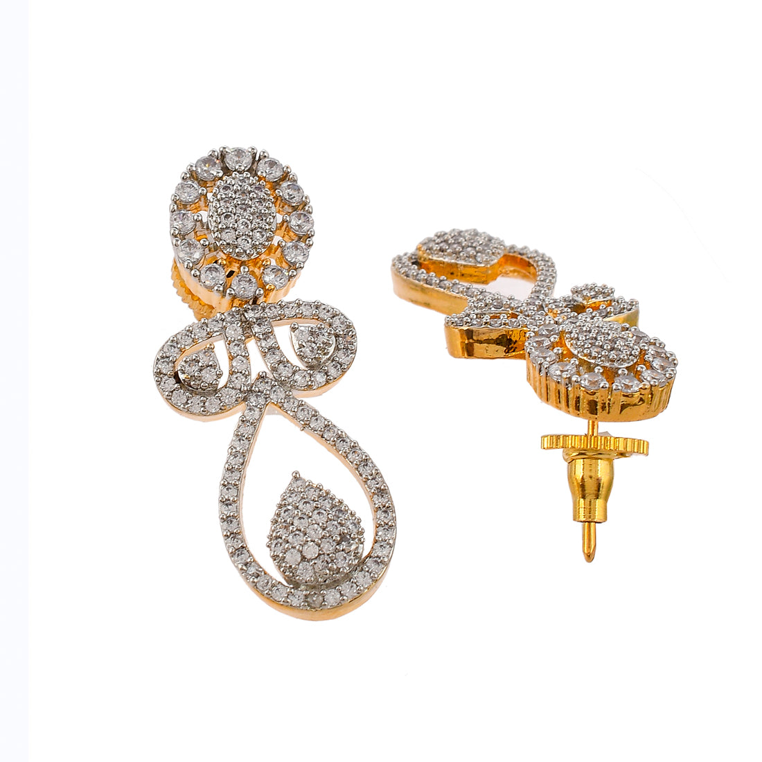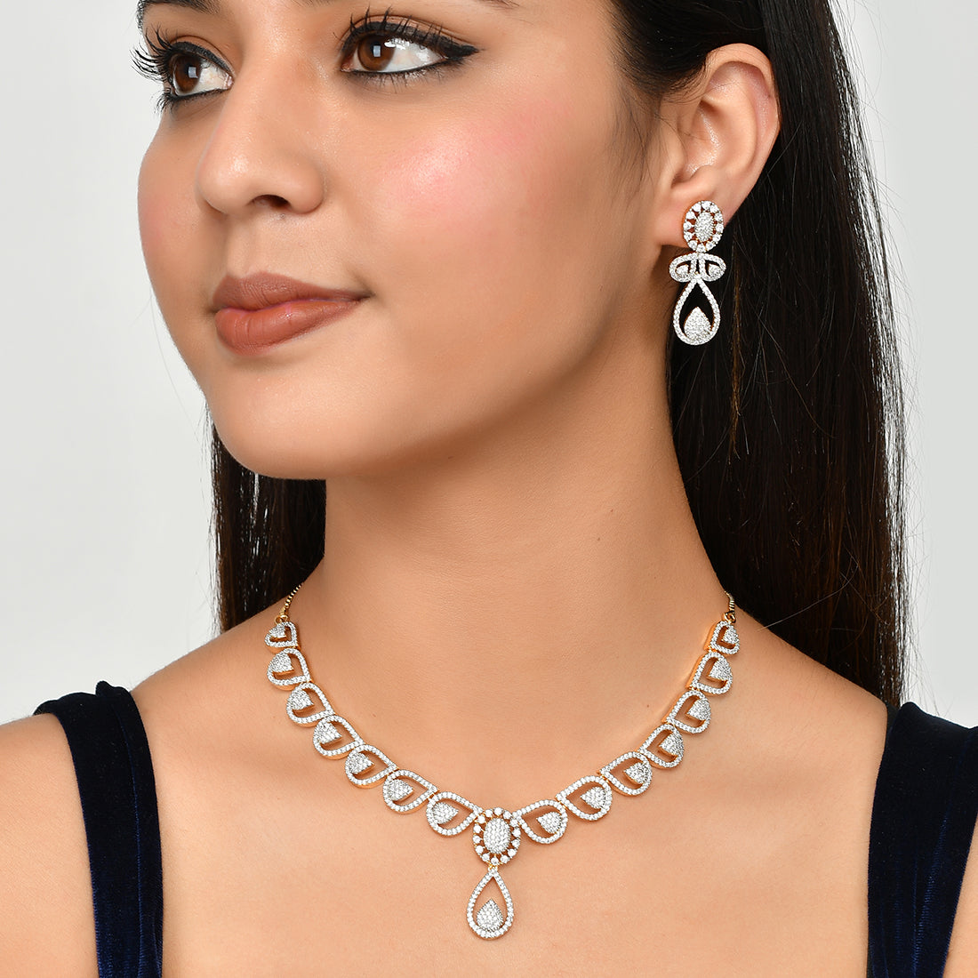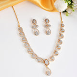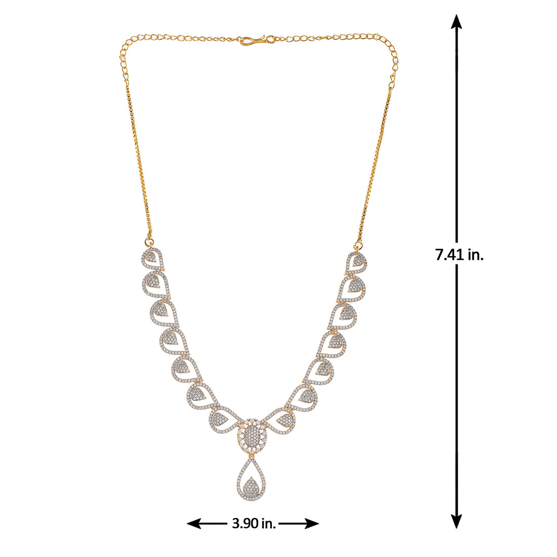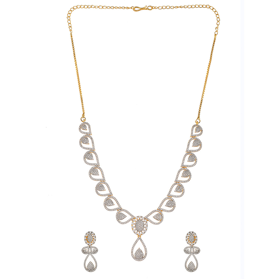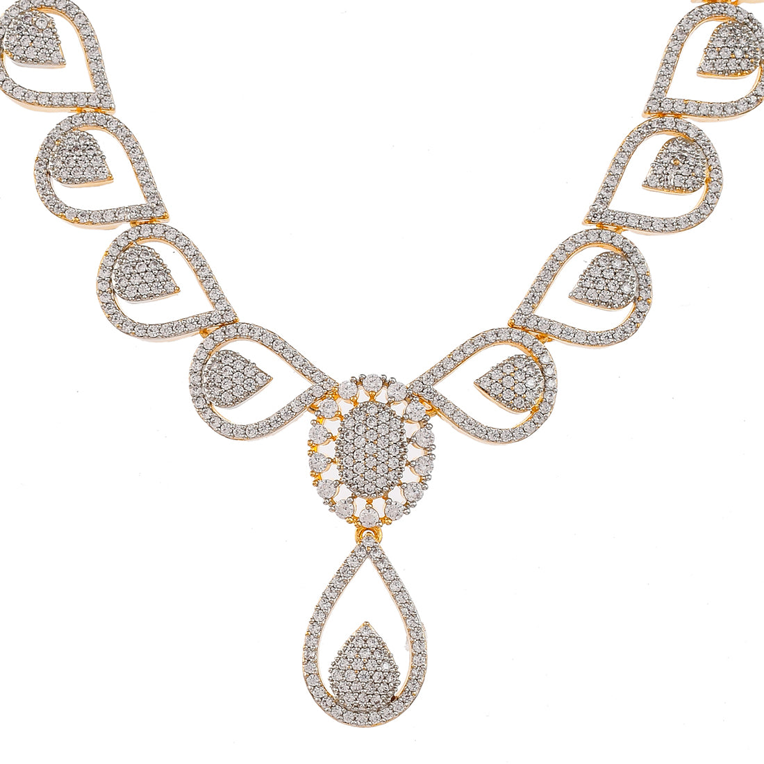 Cz Elegance Leaf Shaped Gold Plated Necklace Set