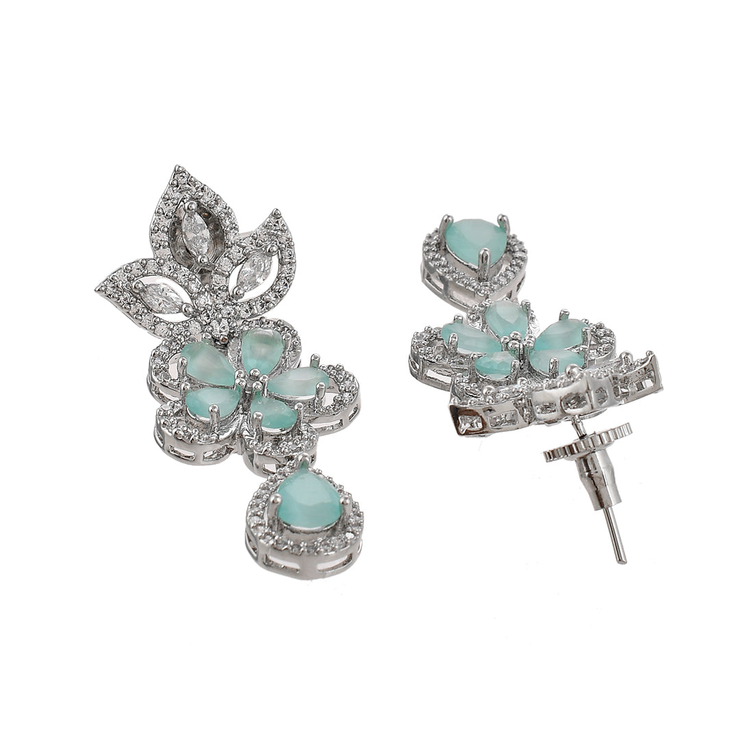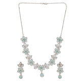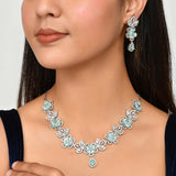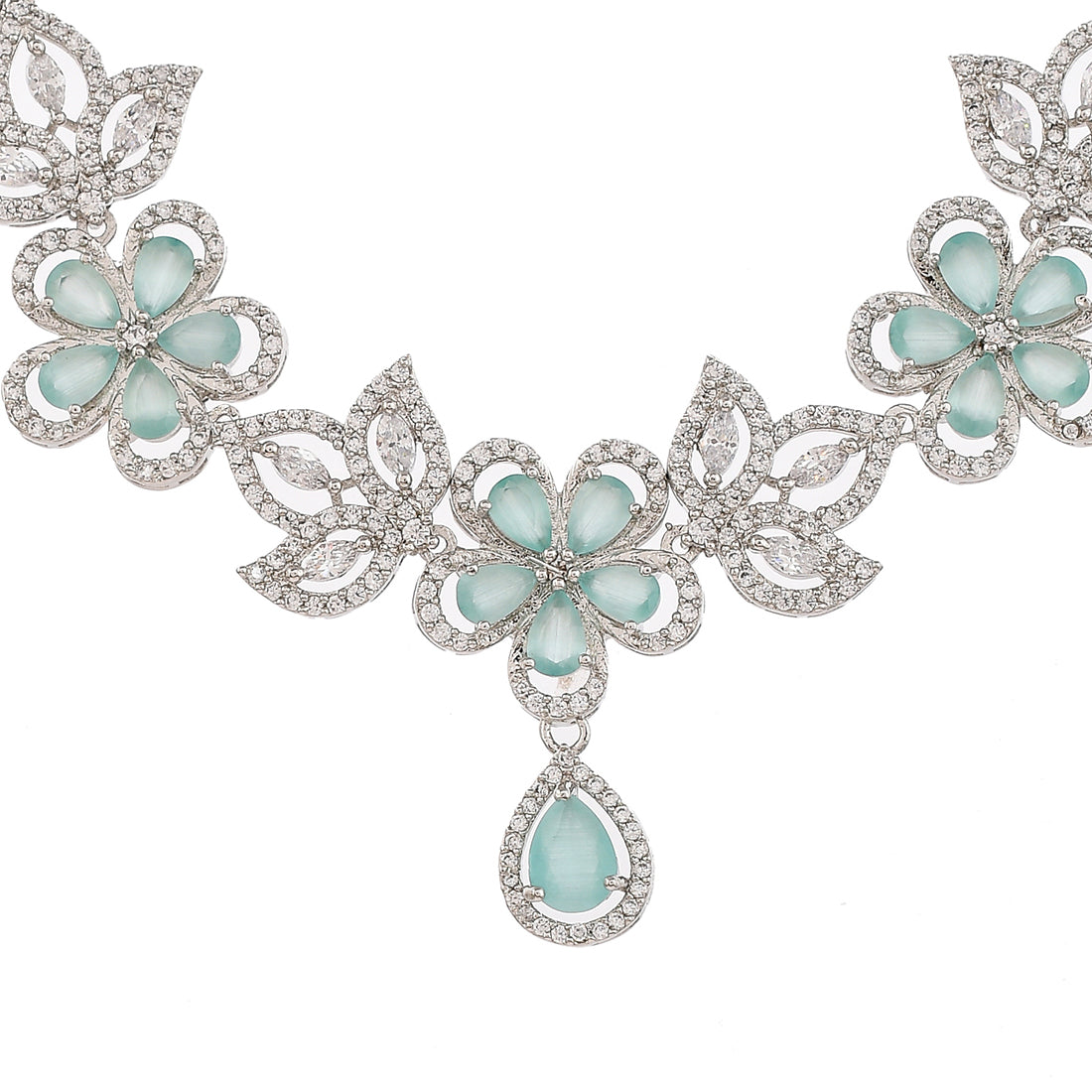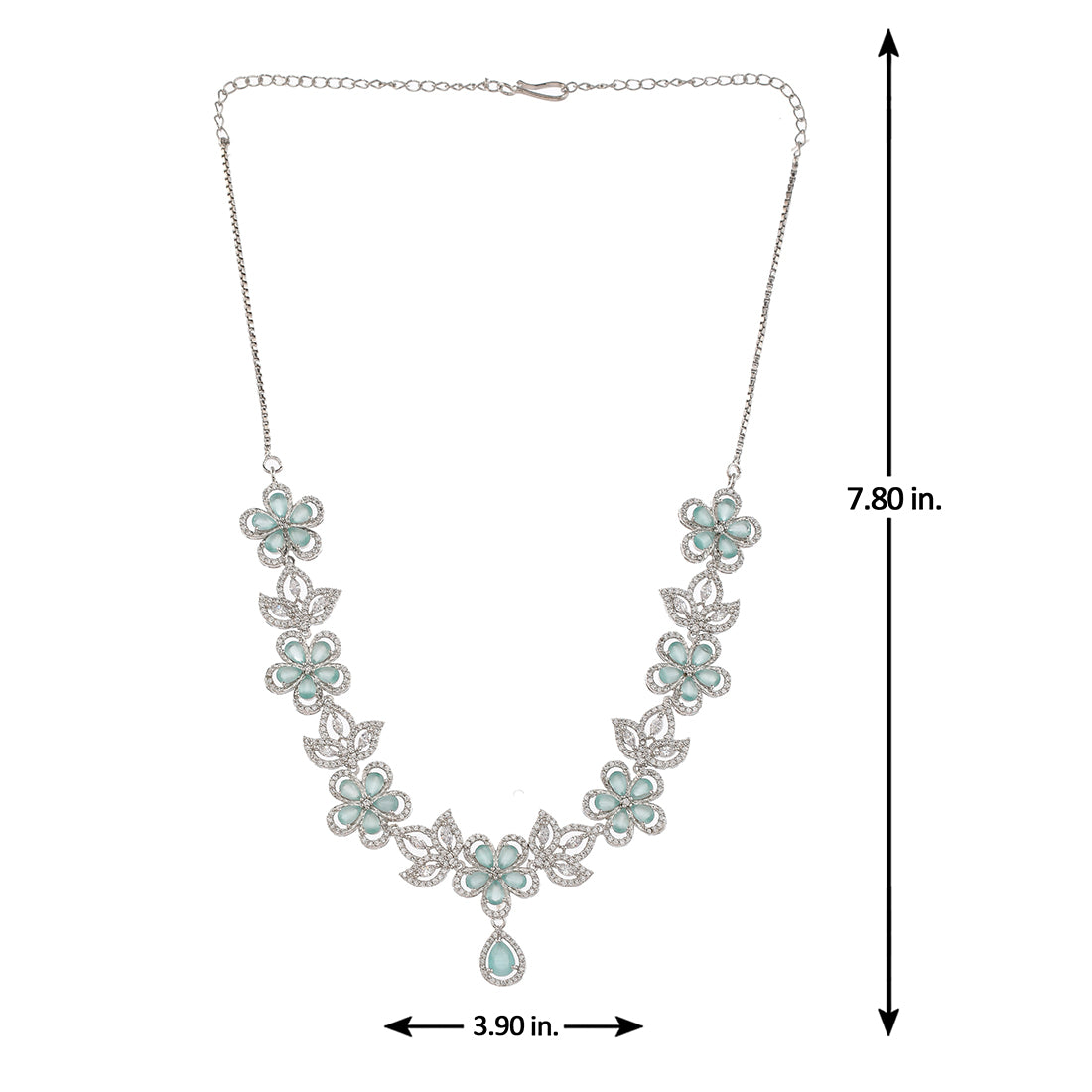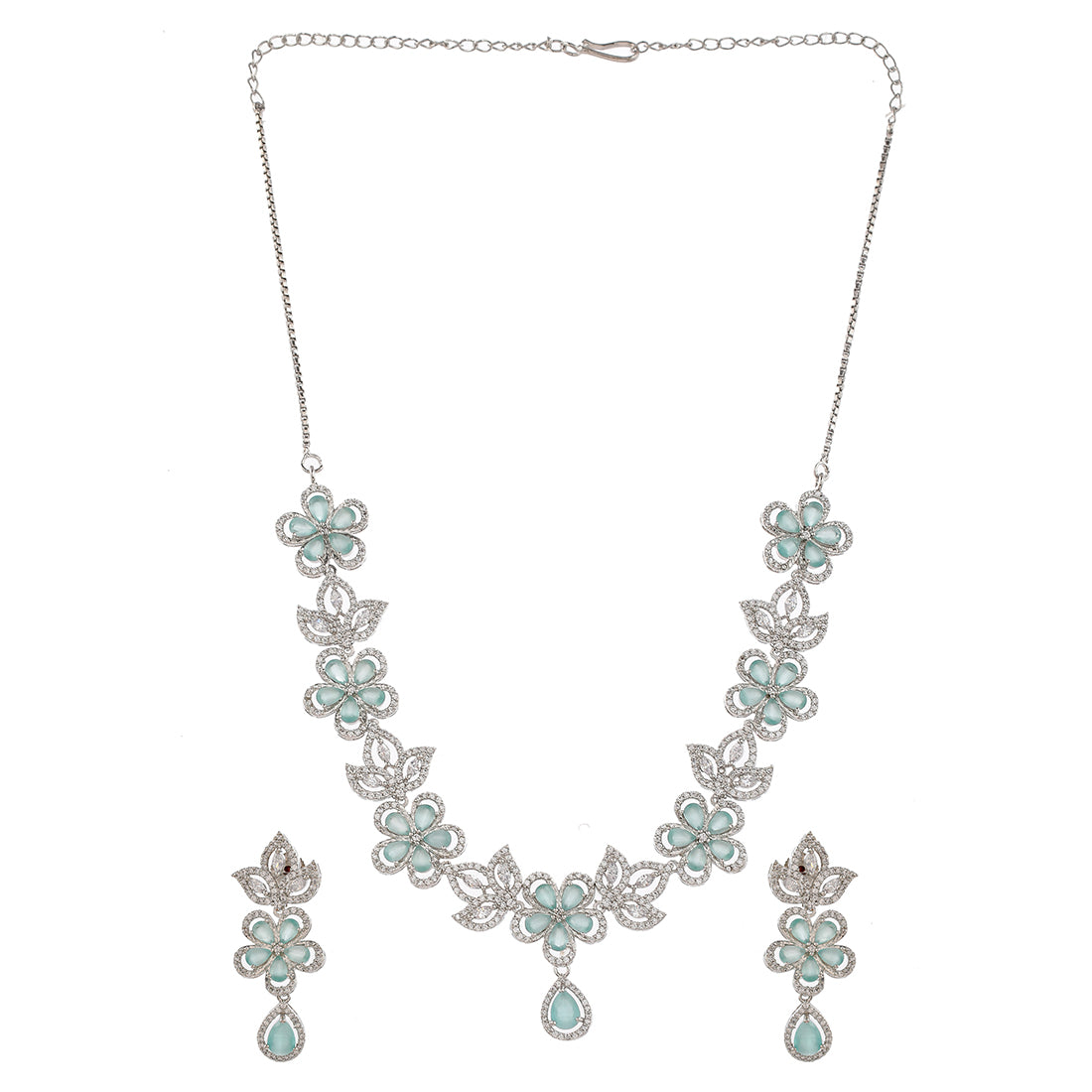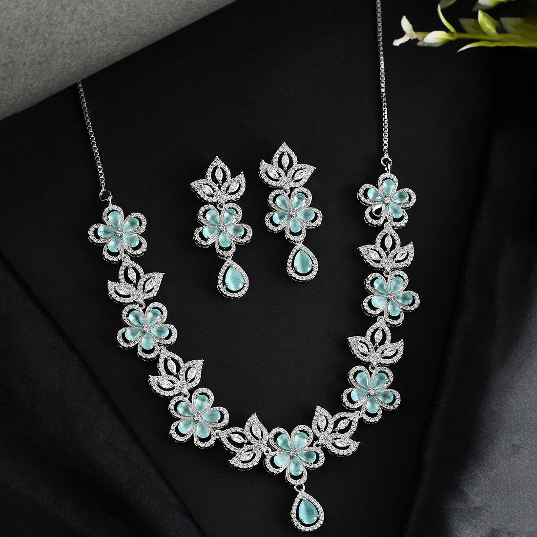 Cz Elegance Silver Plated Blue Flower Necklace Set